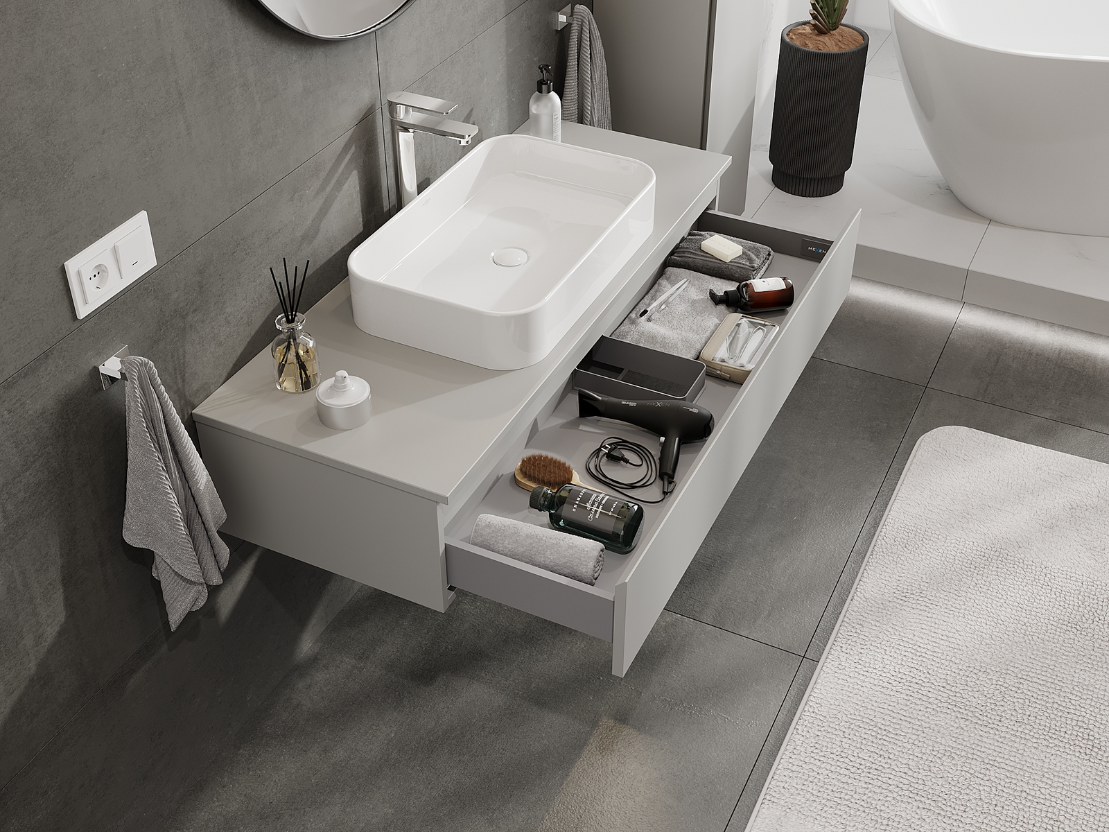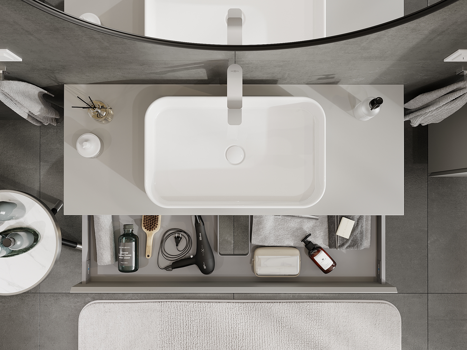 Mexen Orio armário de casa de banho sob o lavatório 120 cm, 1 gaveta, cinza mate - 91A10-12023-1-BF62