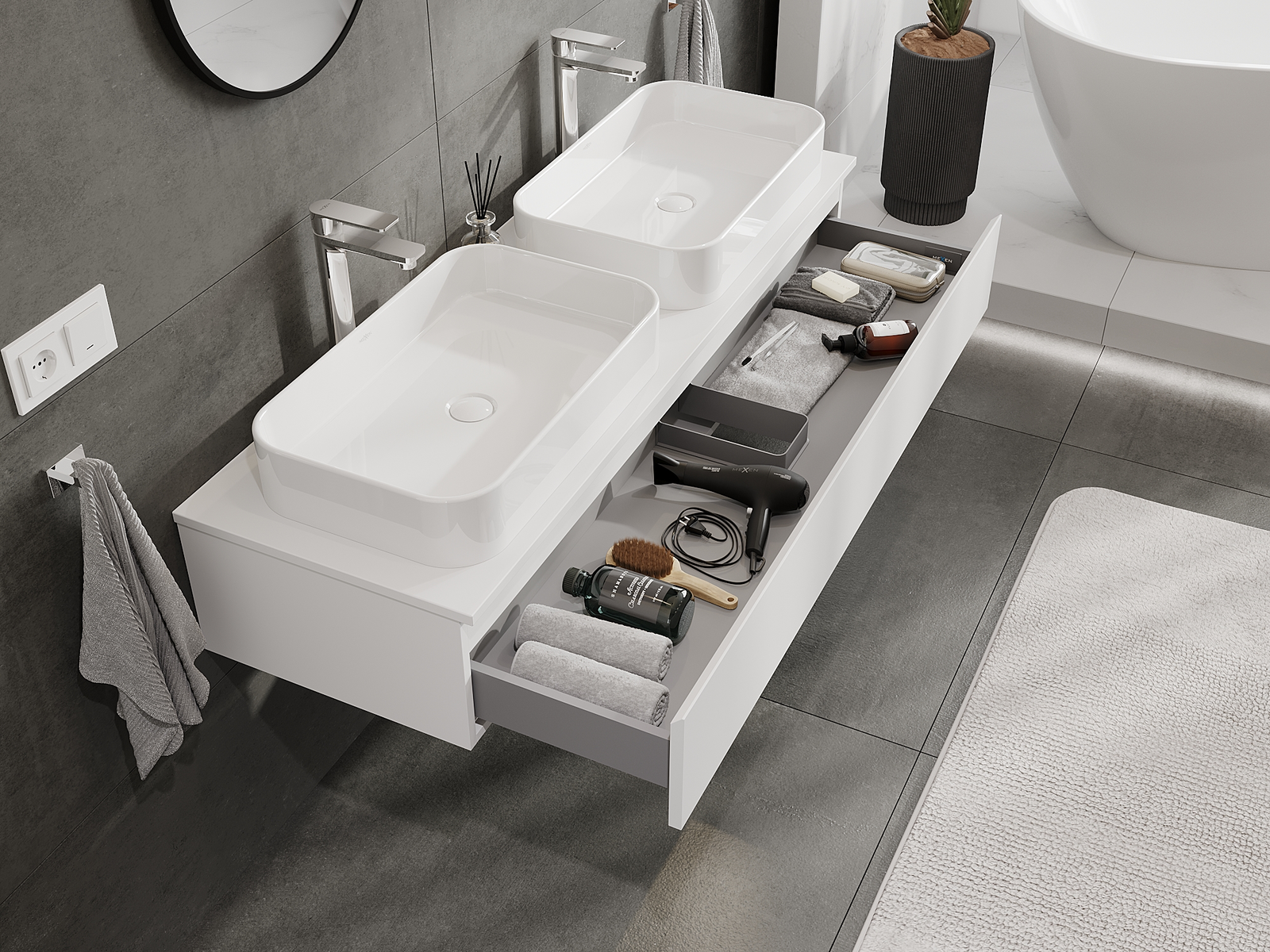 Graças a materiais sólidos, execução precisa e soluções tecnológicas modernas, o produto garante conforto de uso, resistência à humidade e variações de temperatura, bem como uma aparência elegante que se adapta a diferentes estilos de casas de banho.