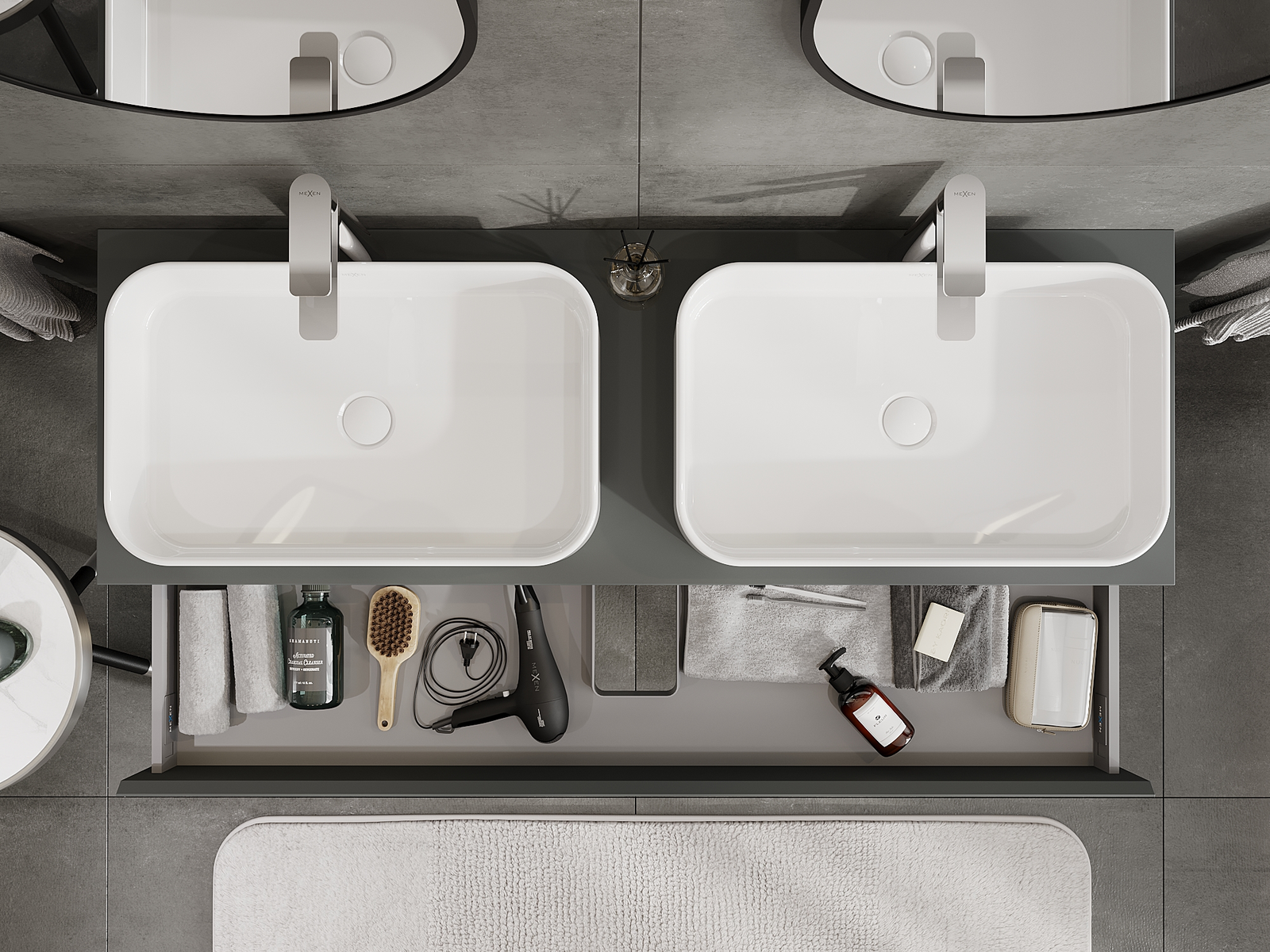 Mexen Orio armário de casa de banho sob lavatório 140 cm, 1 gaveta, grafite mate - 91A10-14023-1-BF66