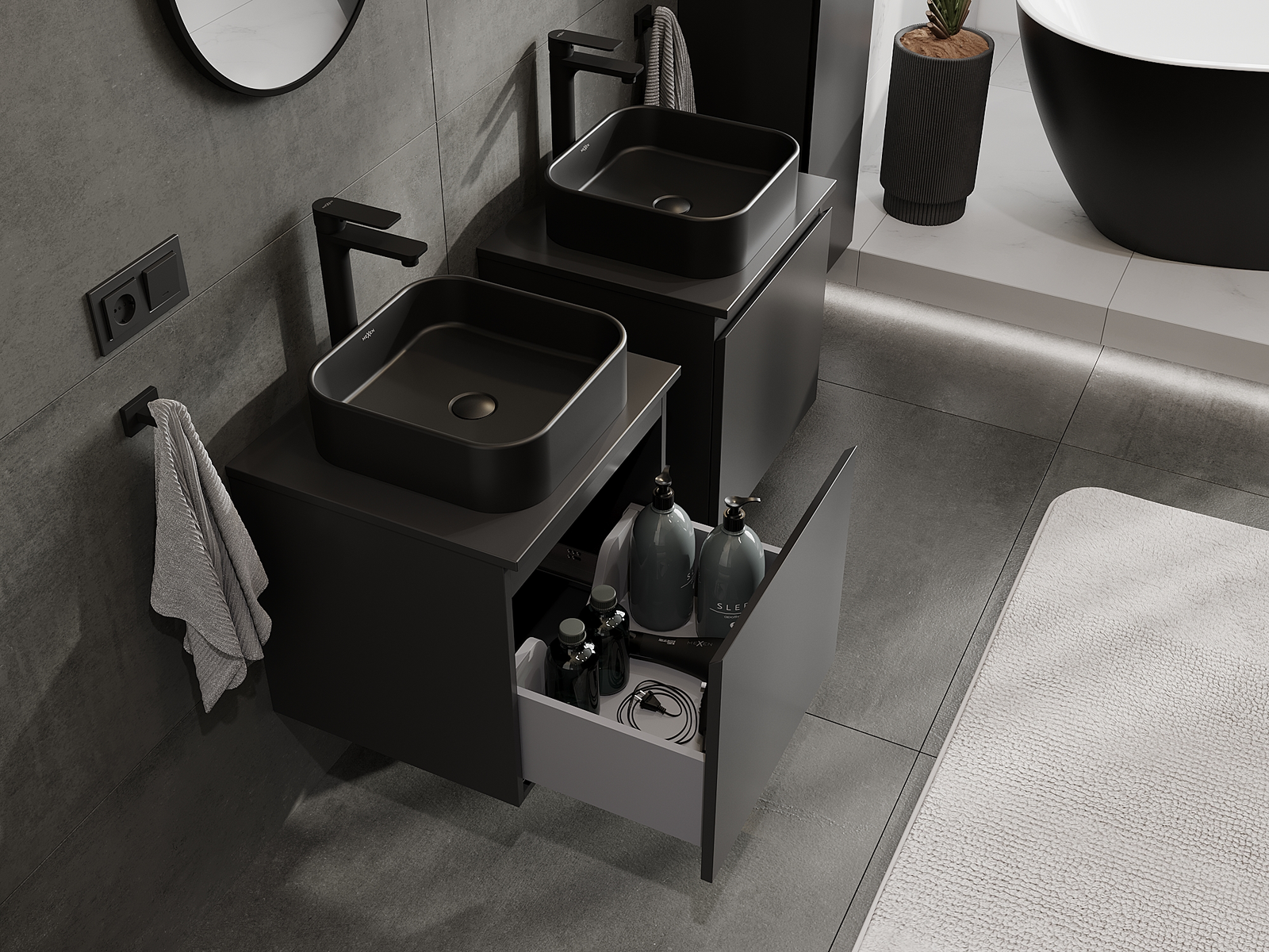 Mexen Orio armário de casa de banho para lavatório 50 cm, 1 gaveta, preto mate - 91A10-05047-1-BF71