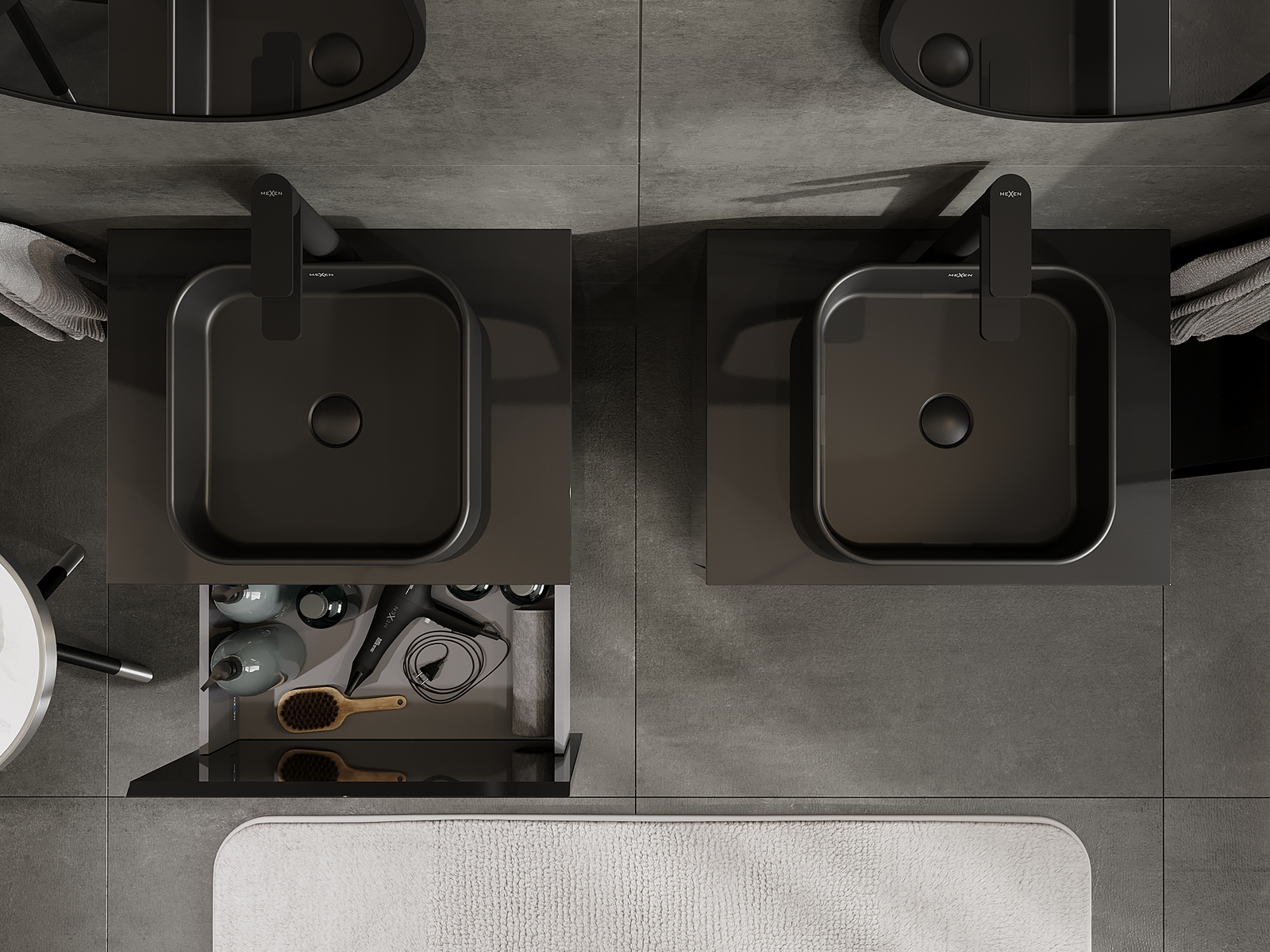 Mexen Orio armário de casa de banho sob lavatório 60 cm, 1 gaveta, preto brilhante - 91A10-06047-1-BF70