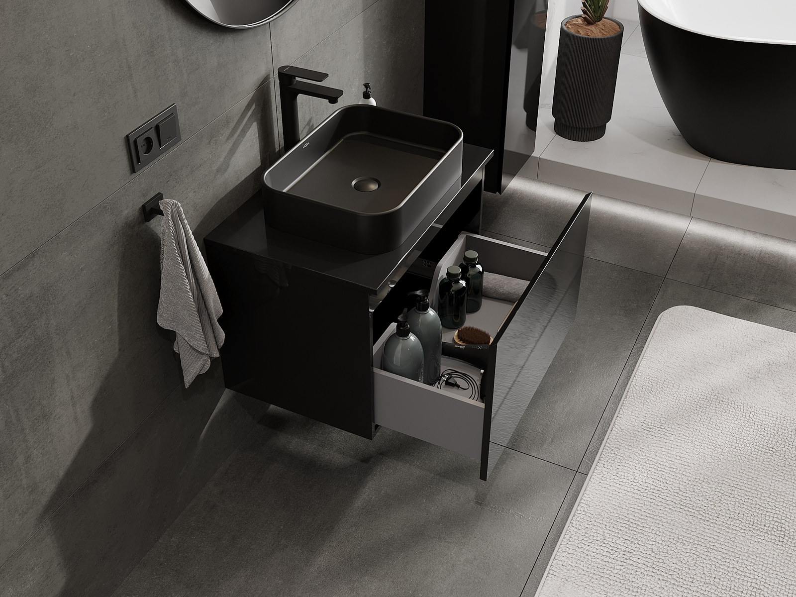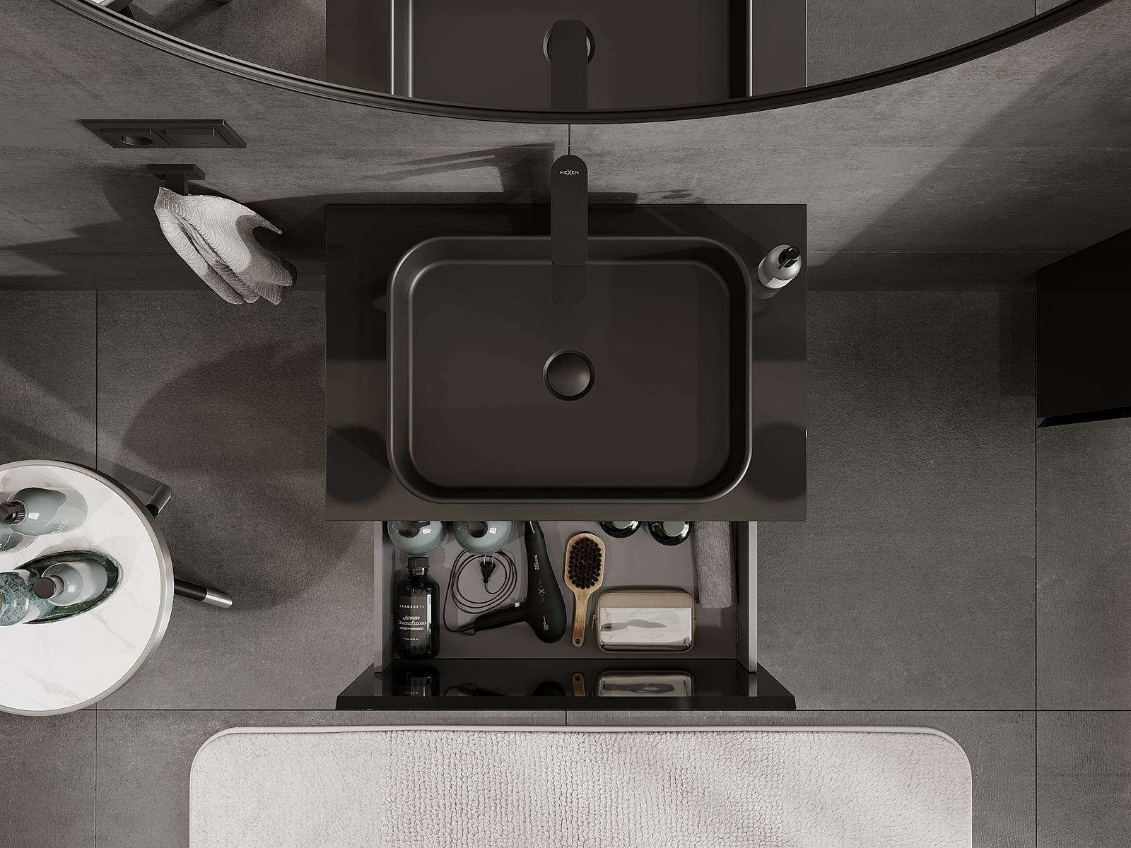 Mexen Orio armário de casa de banho sob lavatório 70 cm, 1 gaveta, preto brilhante - 91A10-07047-1-BF70