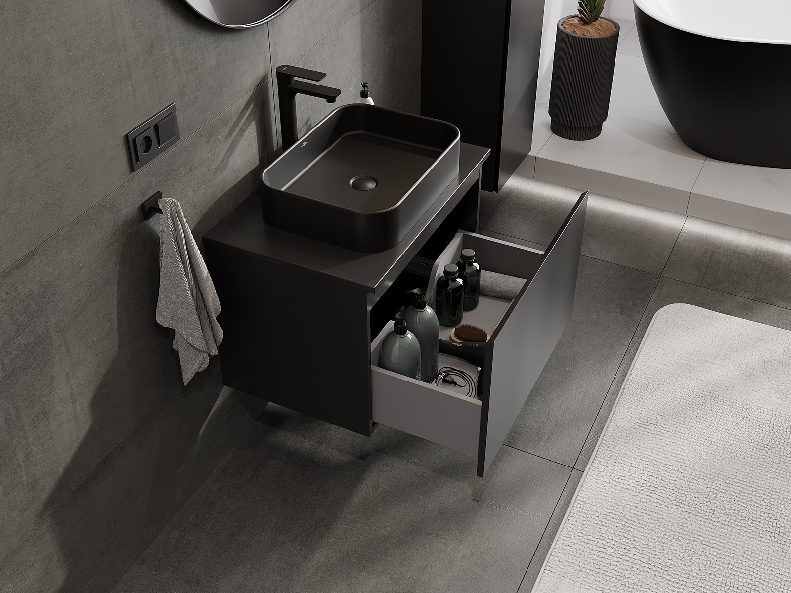 Mexen Orio armário de casa de banho para lavatório 70 cm, 1 gaveta, preto mate - 91A10-07047-1-BF71
