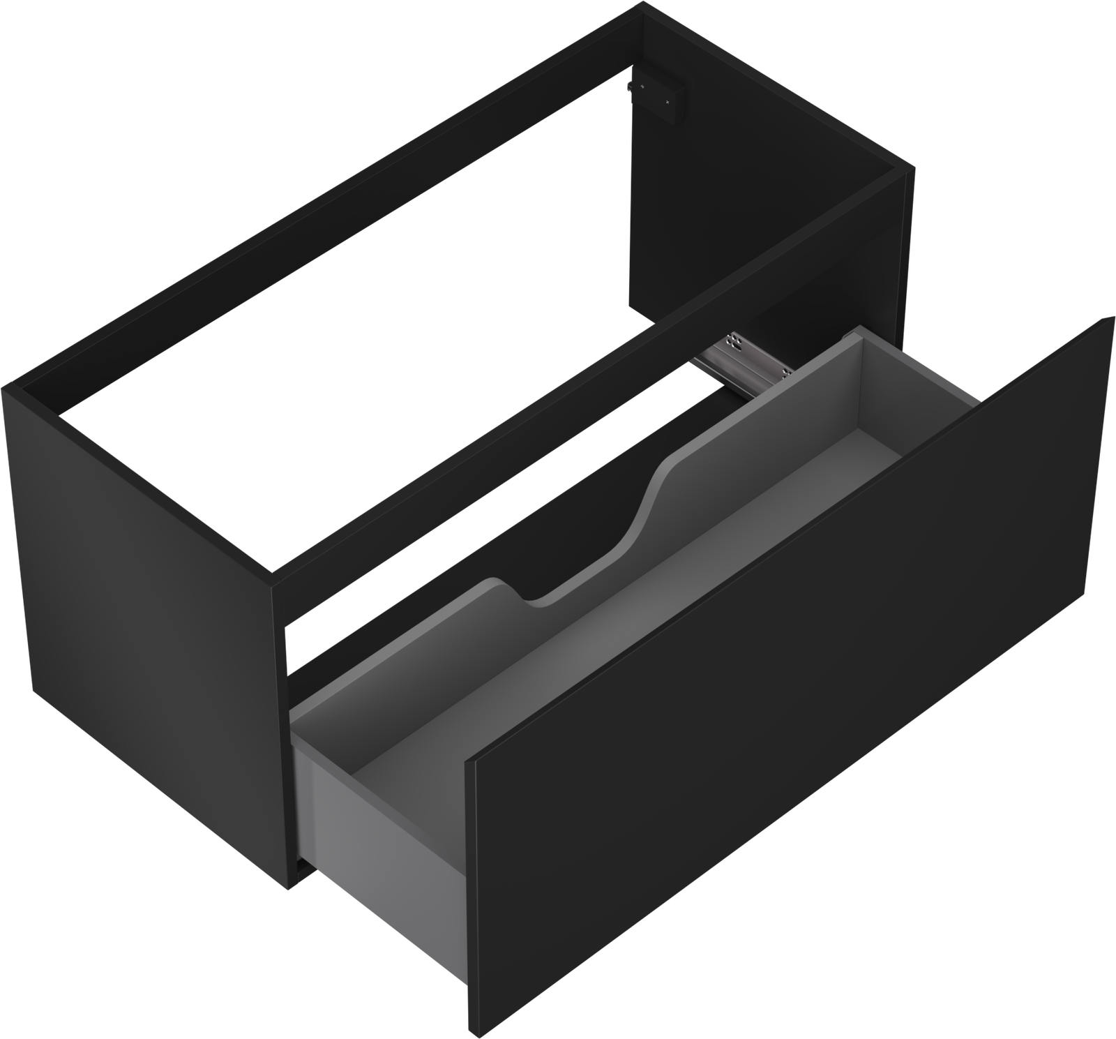 O recorte na gaveta é projetado de forma a acomodar o sifão, que é essencial em instalações de lavatórios. Graças a isso, o móvel pode ser montado de forma totalmente funcional, sem a necessidade de abdicar do espaço da gaveta em prol da instalação.