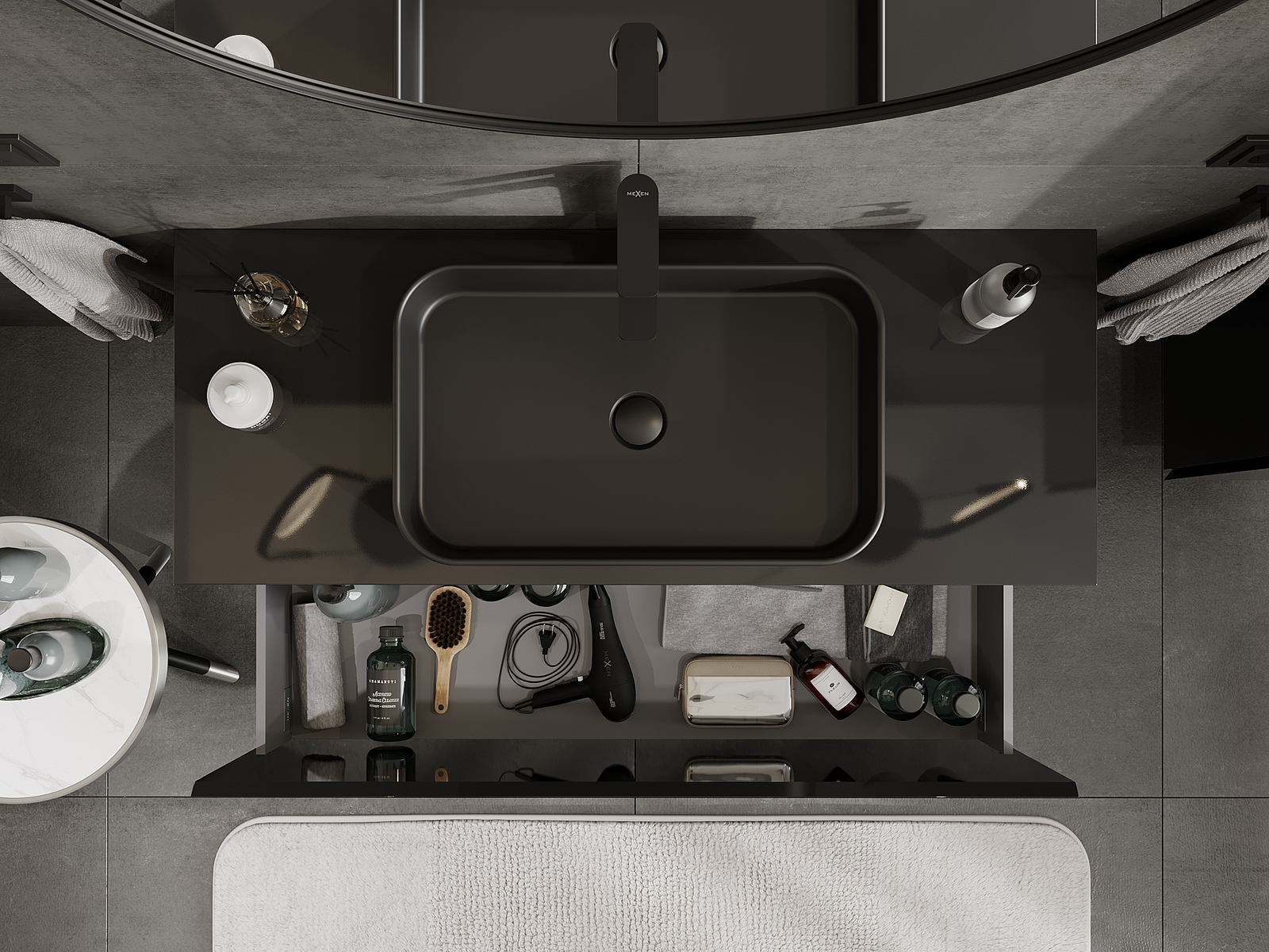 Mexen Orio armário de casa de banho sob o lavatório 120 cm, 1 gaveta, preto brilhante - 91A10-12047-1-BF70