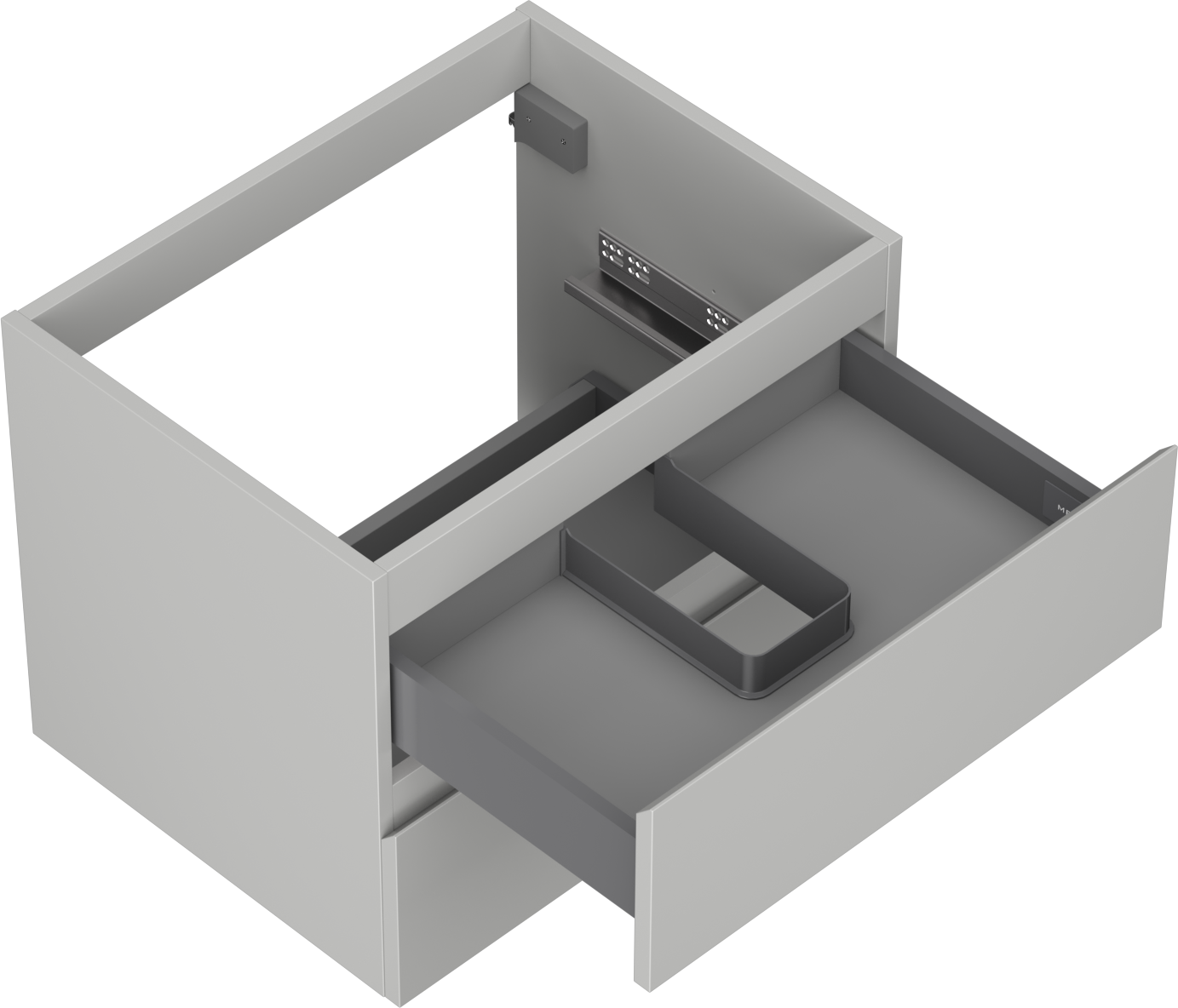 O recorte na gaveta é projetado de forma a acomodar o sifão, que é essencial em instalações de lavatórios. Graças a isso, o móvel pode ser montado de forma totalmente funcional, sem a necessidade de abdicar do espaço da gaveta em prol da instalação.