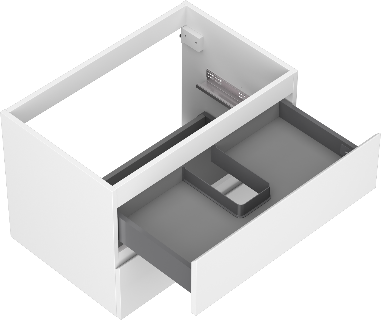 O recorte na gaveta é projetado de forma a acomodar o sifão, que é essencial em instalações de lavatórios. Graças a isso, o móvel pode ser montado de forma totalmente funcional, sem a necessidade de abdicar do espaço da gaveta em prol da instalação.