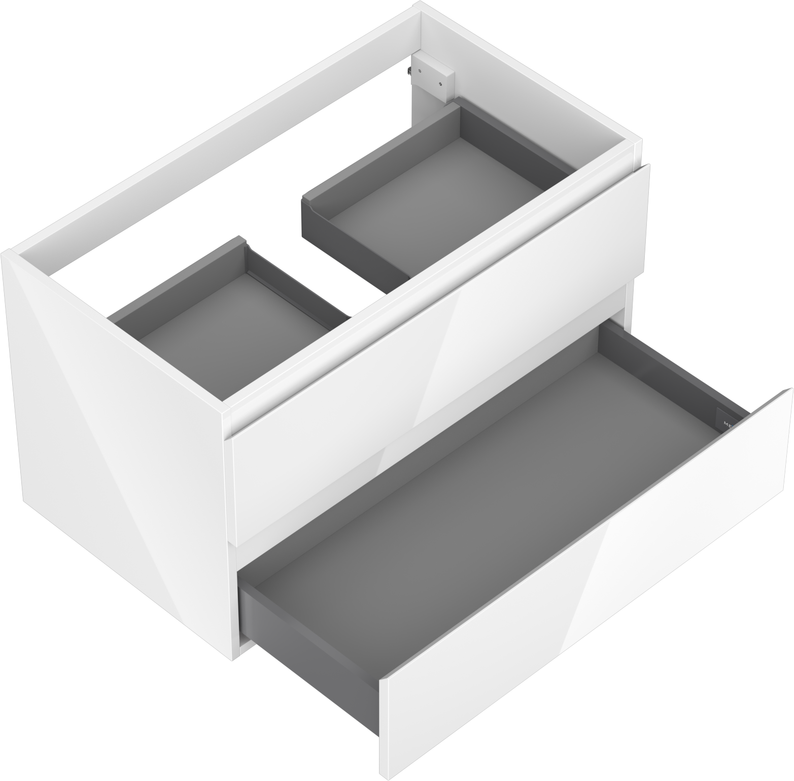 O recorte na gaveta é projetado de forma a acomodar o sifão, que é essencial em instalações de lavatórios. Graças a isso, o móvel pode ser montado de forma totalmente funcional, sem a necessidade de abdicar do espaço da gaveta em prol da instalação.