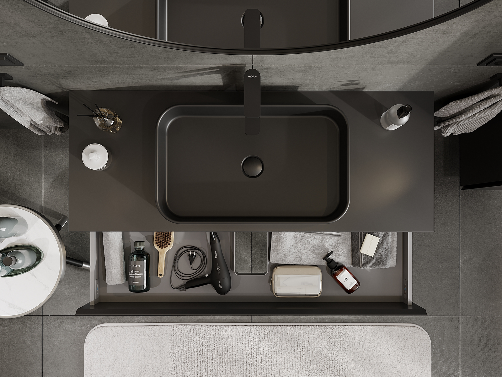 Mexen Orio armário de casa de banho sob lavatório 120 cm, 2 gavetas, preto mate - 91A10-12047-2-BFF71