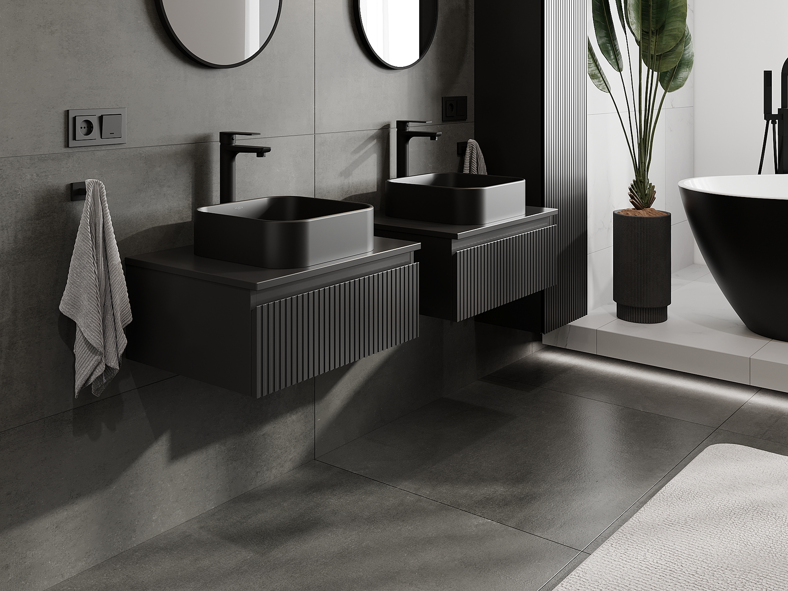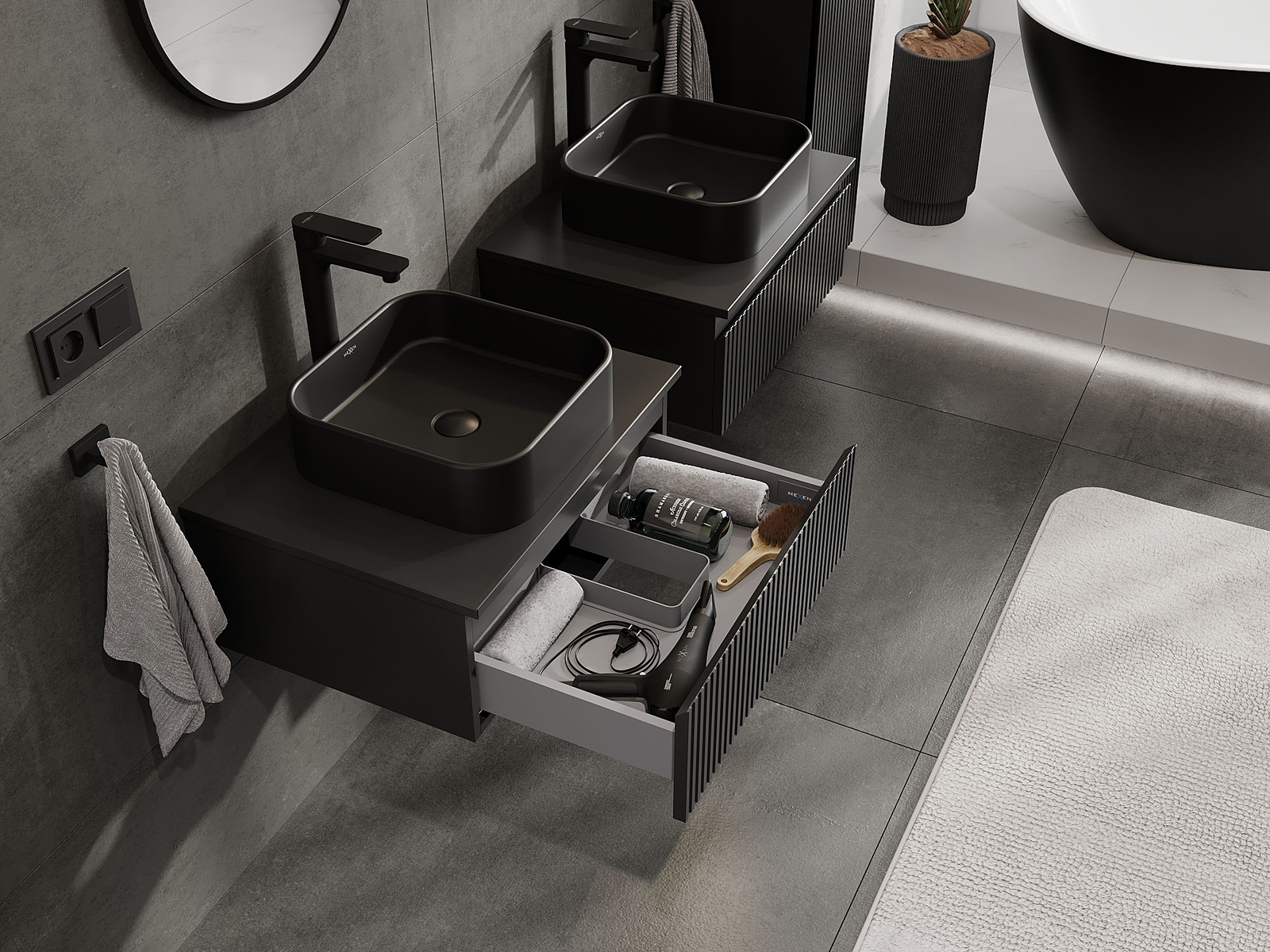 Mexen Rivel armário de casa de banho sob lavatório 60 cm, 1 gaveta, canelado, preto mate - 91A20-06023-1-BF71