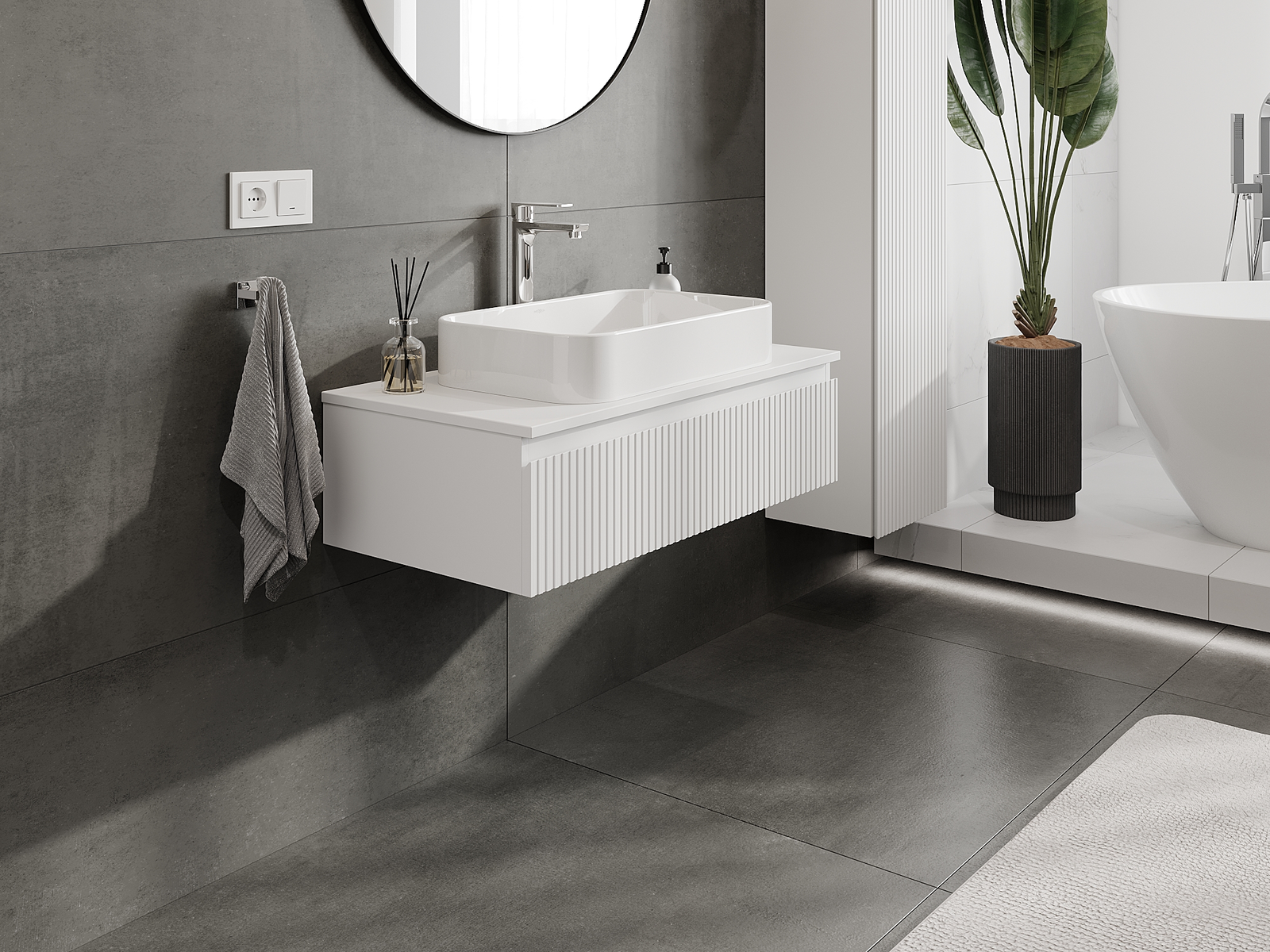 Mexen Rivel armário de casa de banho com lavatório 90 cm, 1 gaveta, com superfície ranhurada, branco mate