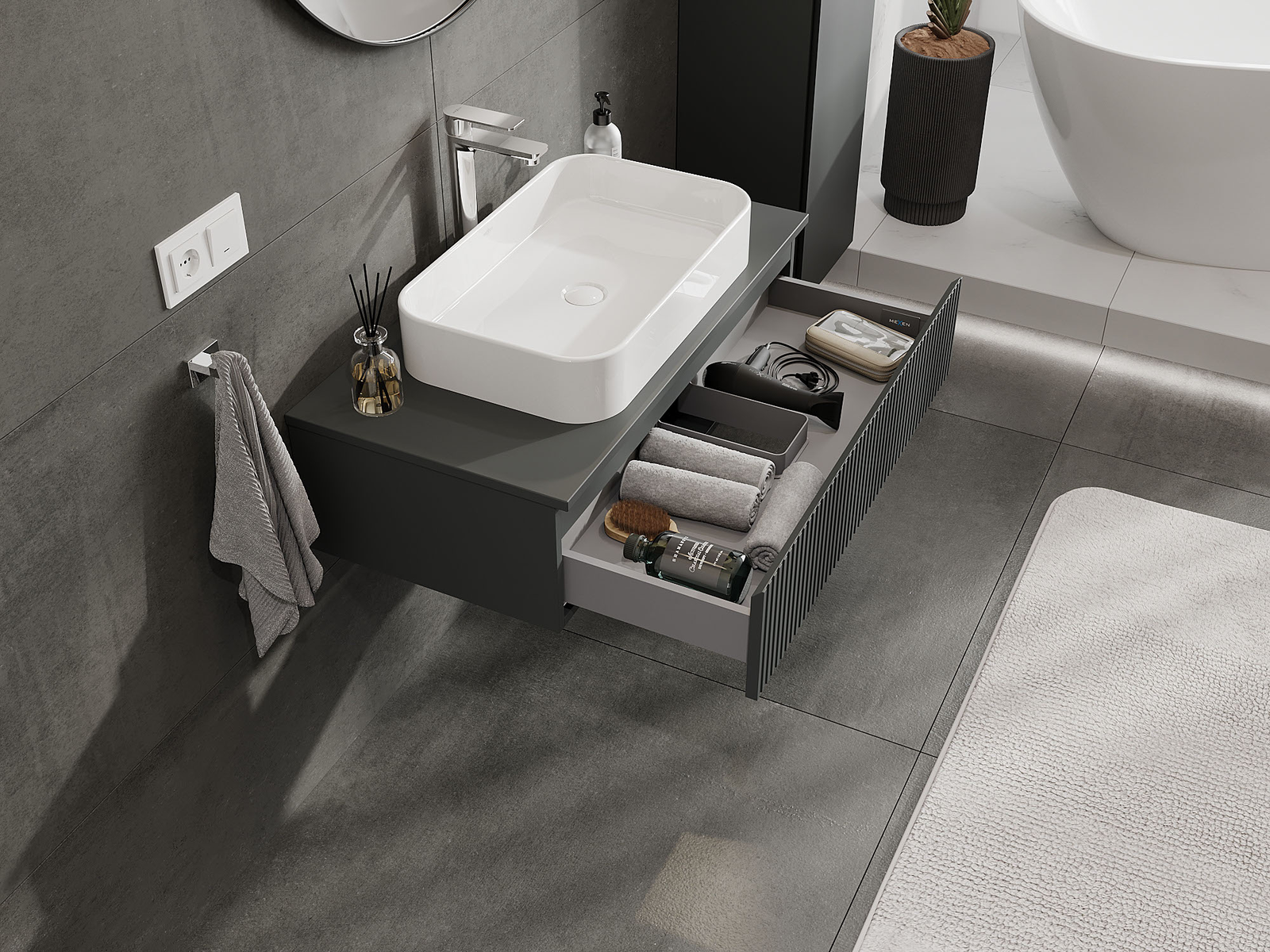 Mexen Rivel armário de casa de banho sob lava-loiça 90 cm, 1 gaveta, ranhurado, grafite mate - 91A20-09023-1-BF66