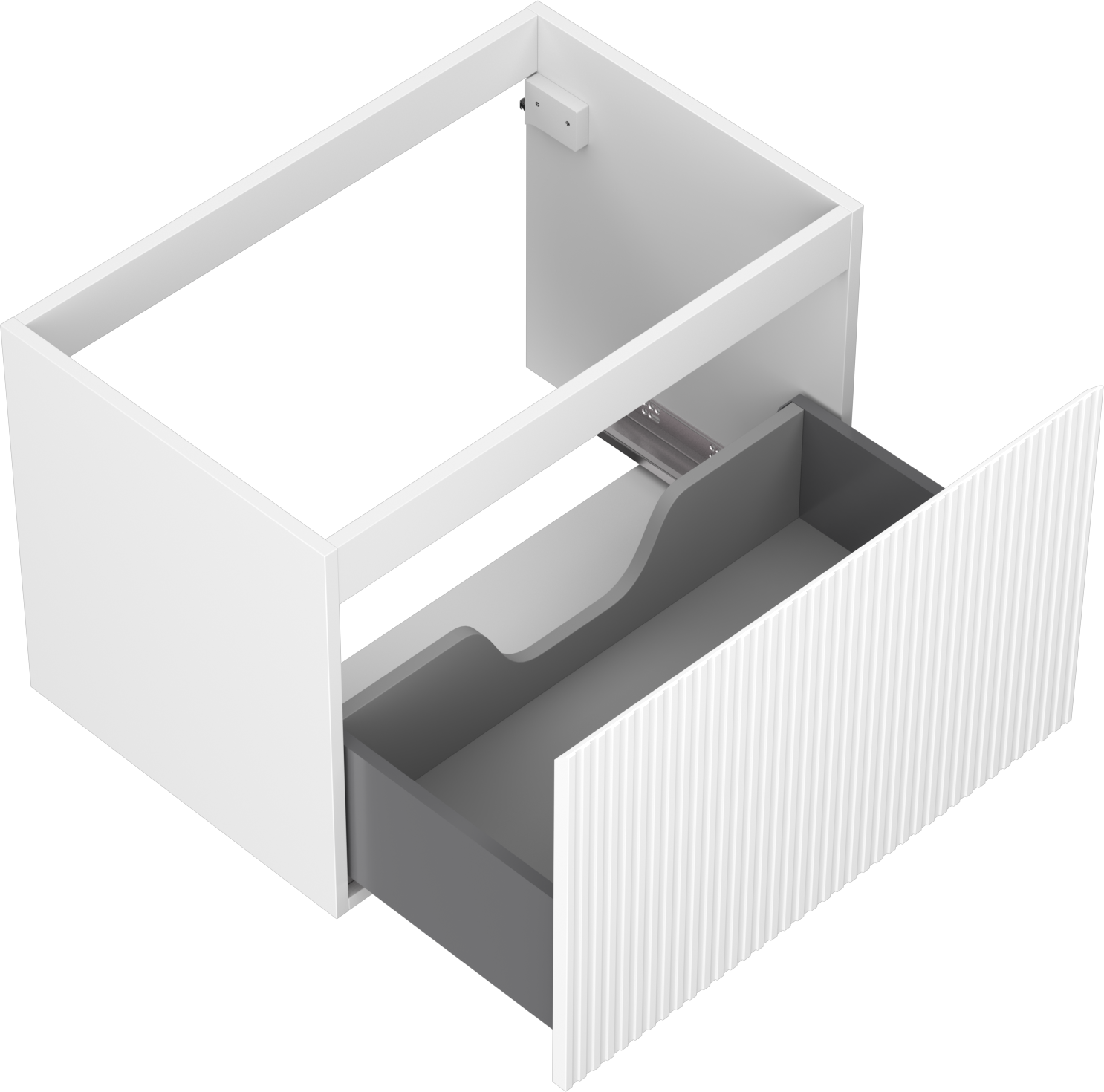 O recorte na gaveta é projetado de forma a acomodar o sifão, que é essencial em instalações de lavatórios. Graças a isso, o móvel pode ser montado de forma totalmente funcional, sem a necessidade de abdicar do espaço da gaveta em prol da instalação.