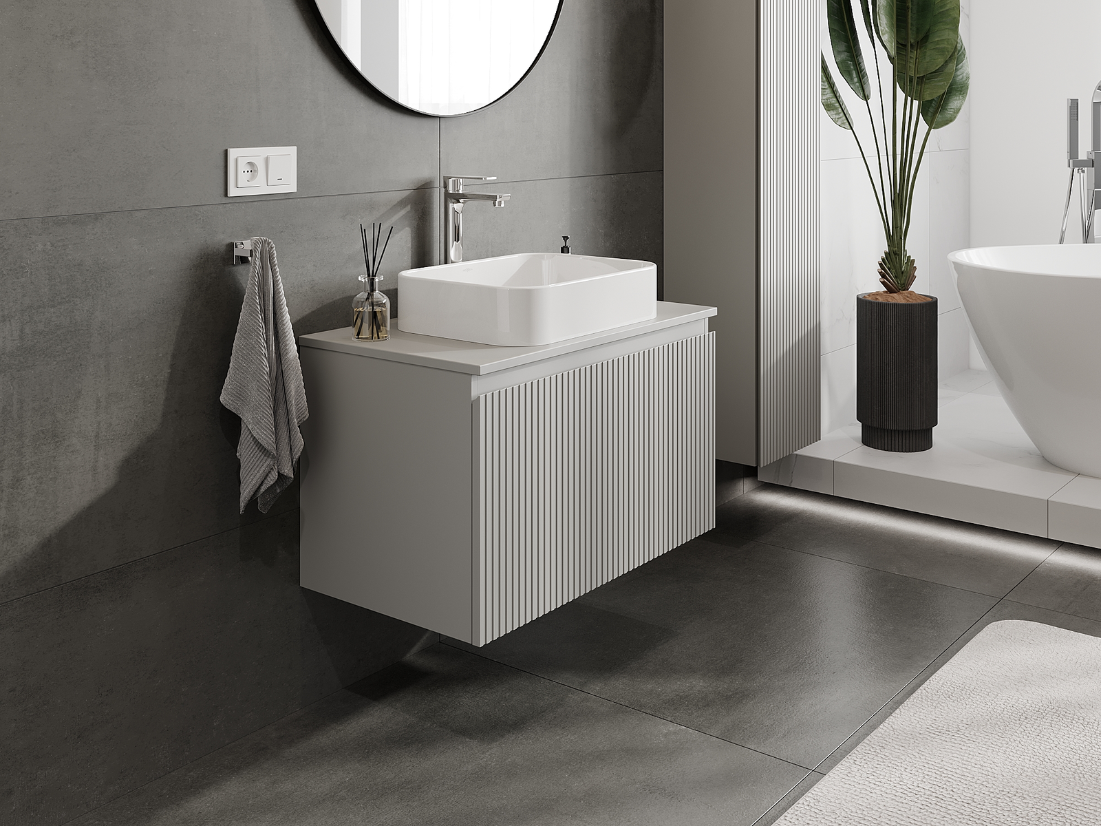 Mexen Rivel armário de casa de banho para lavatório 80 cm, 1 gaveta, frisado, cinza mate - 91A20-08047-1-BF62