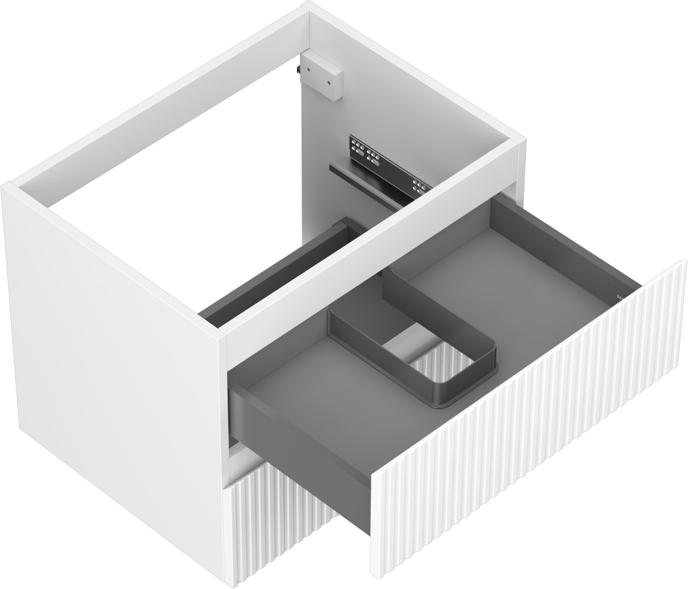 O recorte na gaveta é projetado de forma a acomodar o sifão, que é essencial em instalações de lavatórios. Graças a isso, o móvel pode ser montado de forma totalmente funcional, sem a necessidade de abdicar do espaço da gaveta em prol da instalação.