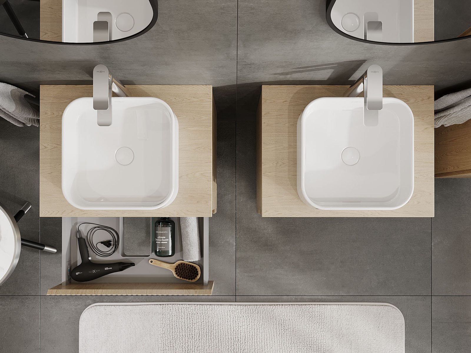 Mexen Rivel armário de casa de banho debaixo do lavatório 60 cm, 2 gavetas, ranhurado, carvalho - 91A20-06047-2-BFF81