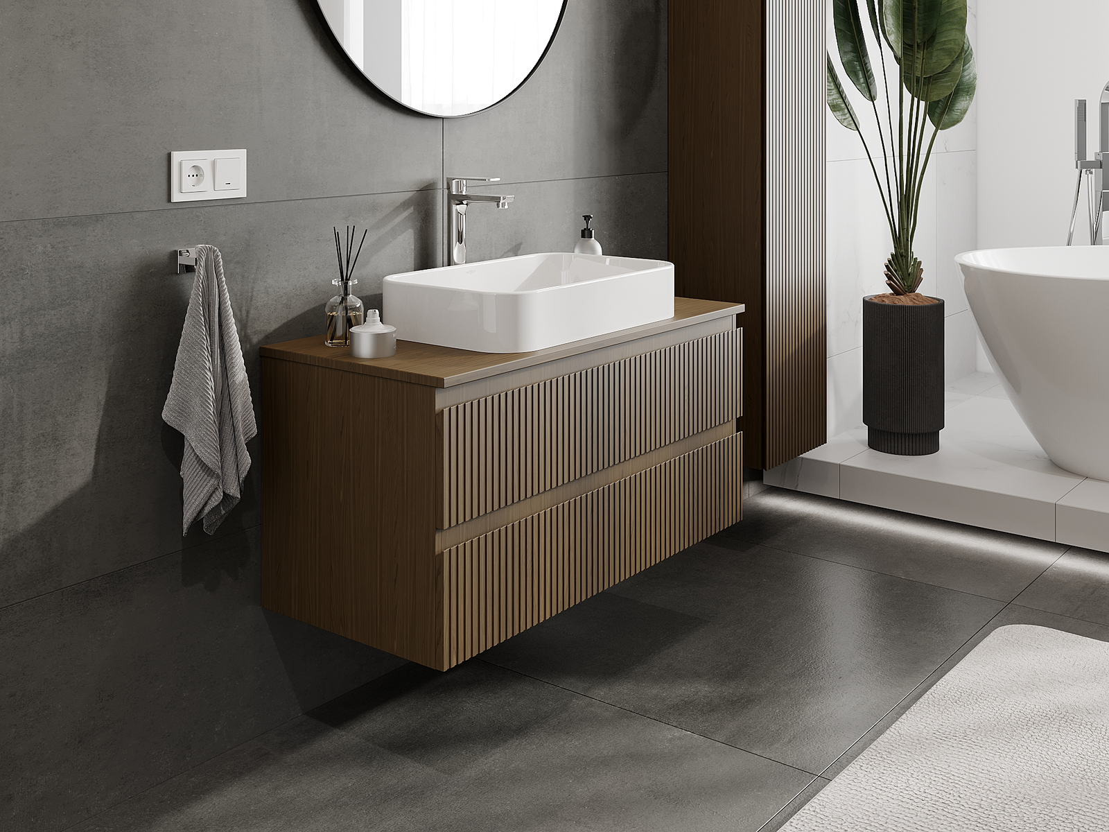Mexen Rivel armário de casa de banho inferior para lavatório 100 cm, 2 gavetas, canelado, nogueira - 91A20-10047-2-BFF86