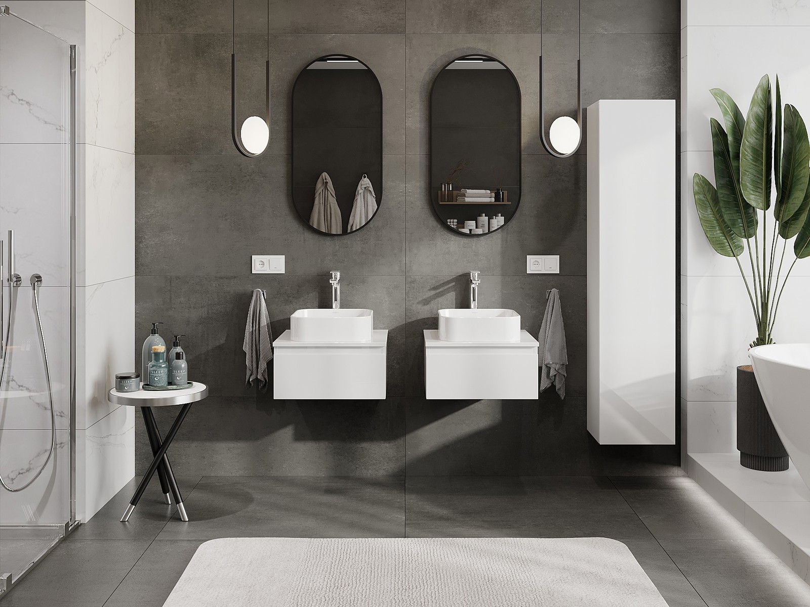 O corpo do armário é entregue totalmente montado, o que significa conveniência máxima e economia de tempo. Não precisas de perder horas a montar o móvel – basta instalá-lo no local escolhido na casa de banho. É a solução ideal para pessoas que valorizam montagem rápida e efeito imediato.