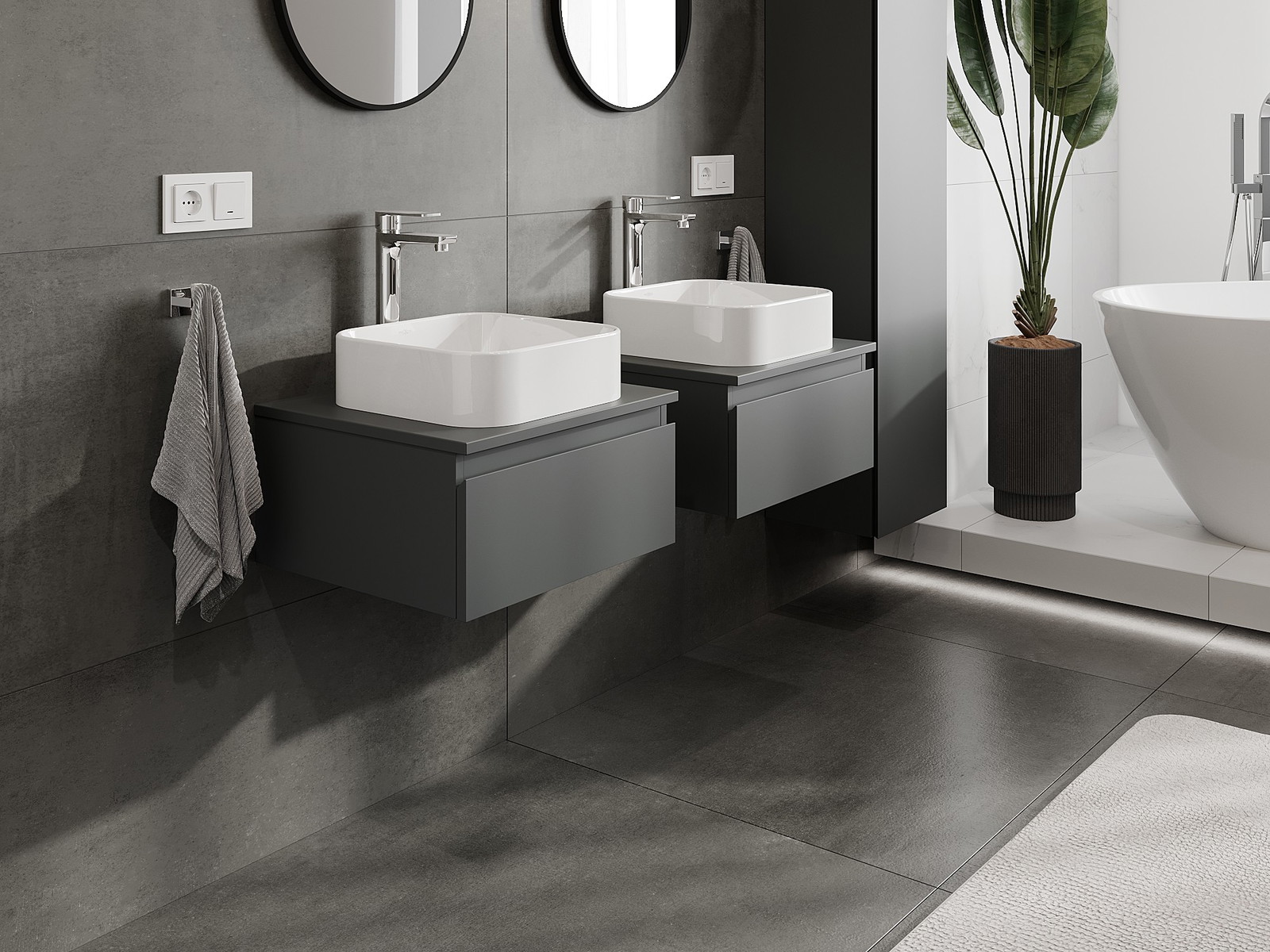 Mexen Orio armário de banheiro para lavatório 50 cm com tampo, 1 gaveta, grafite mate - 91A10-05023-1-BFC66
