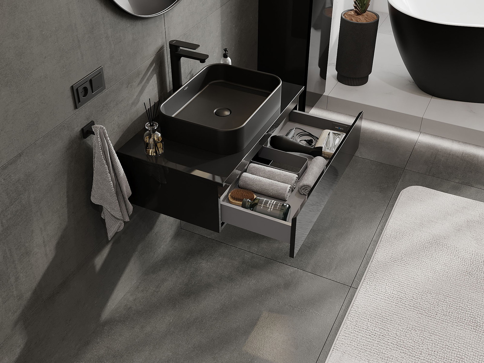 Mexen Orio armário de casa de banho de 80 cm com bancada, 1 gaveta, preto brilhante - 91A10-08023-1-BFC70