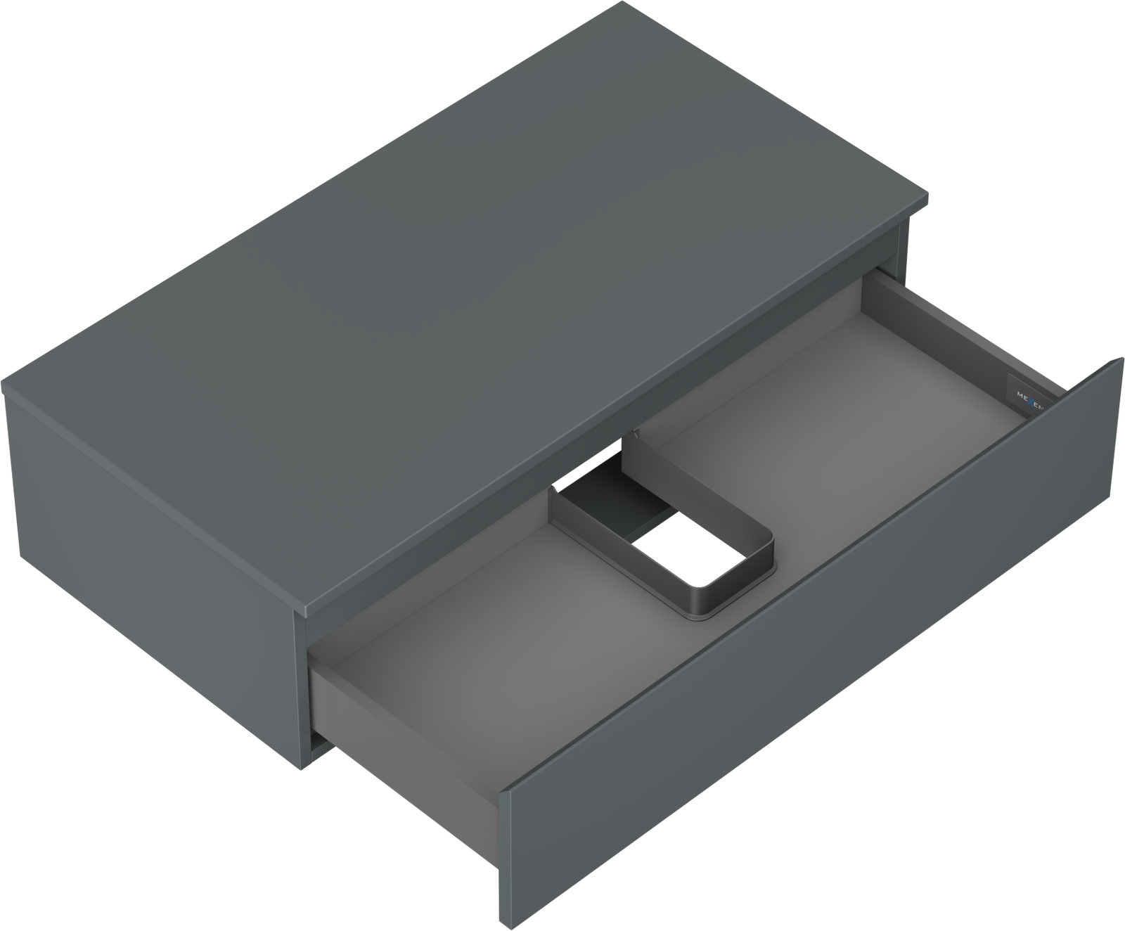 O recorte na gaveta é projetado de forma a acomodar o sifão, que é essencial em instalações de lavatórios. Graças a isso, o móvel pode ser montado de forma totalmente funcional, sem a necessidade de abdicar do espaço da gaveta em prol da instalação.