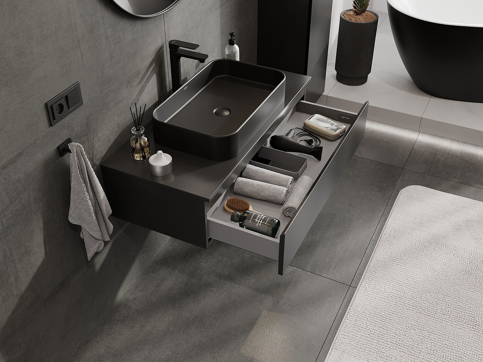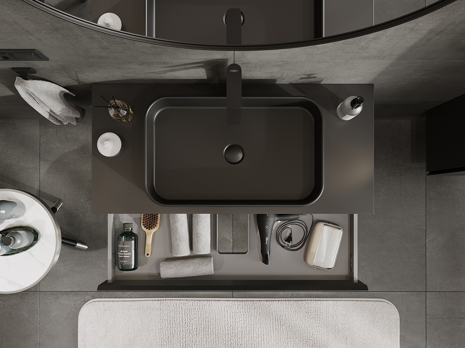 Mexen Orio móvel de casa de banho debaixo do lavatório 100 cm com tampo, 1 gaveta, preto mate - 91A10-10023-1-BFC71