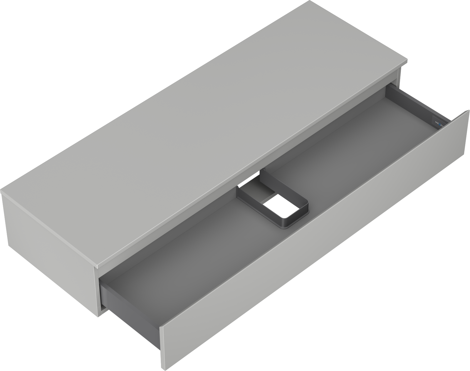 O recorte na gaveta é projetado de forma a acomodar o sifão, que é essencial em instalações de lavatórios. Graças a isso, o móvel pode ser montado de forma totalmente funcional, sem a necessidade de abdicar do espaço da gaveta em prol da instalação.