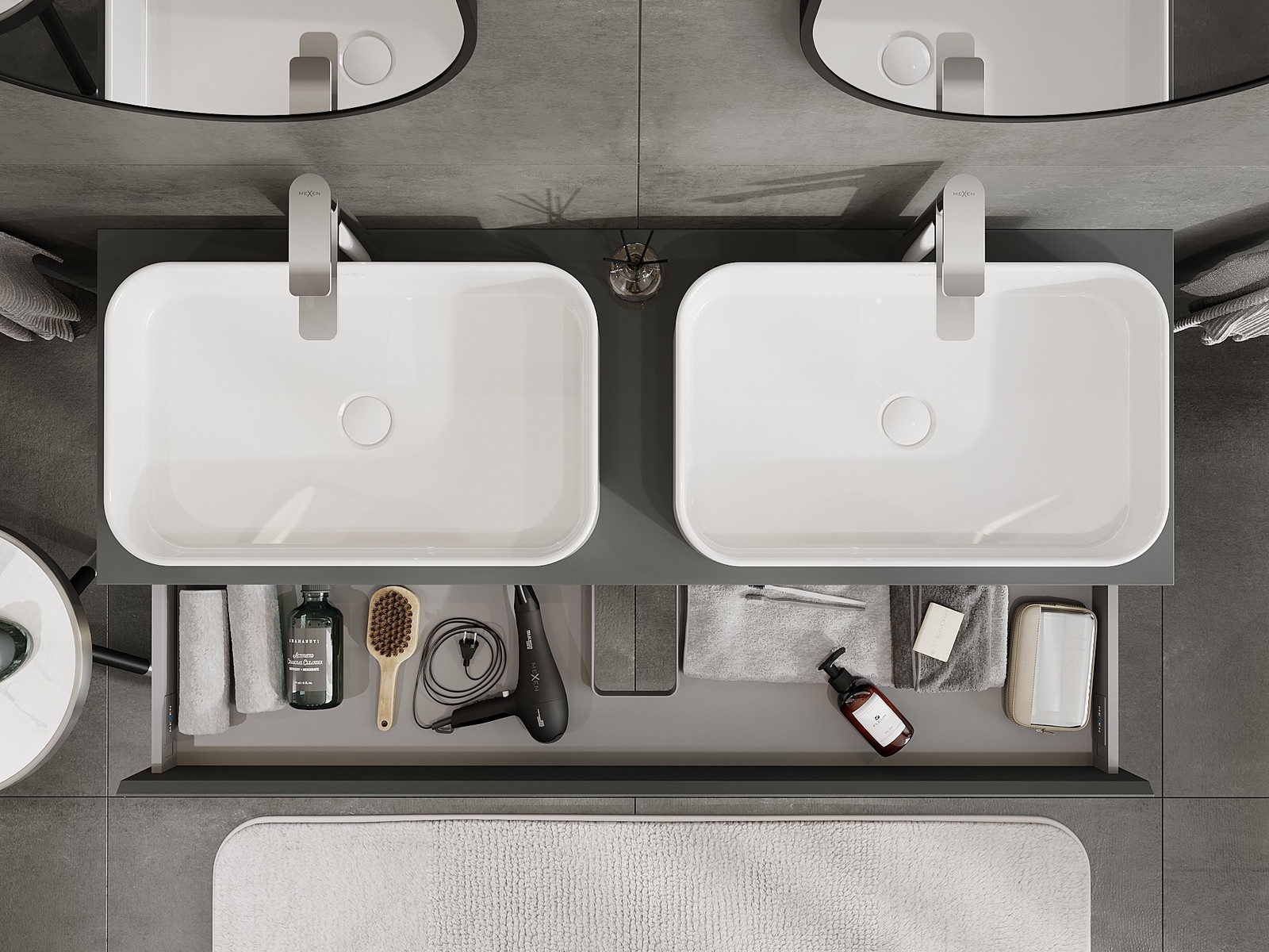 Mexen Orio armário de casa de banho para lavatório 140 cm com tampo, 1 gaveta, grafite mate - 91A10-14023-1-BFC66
