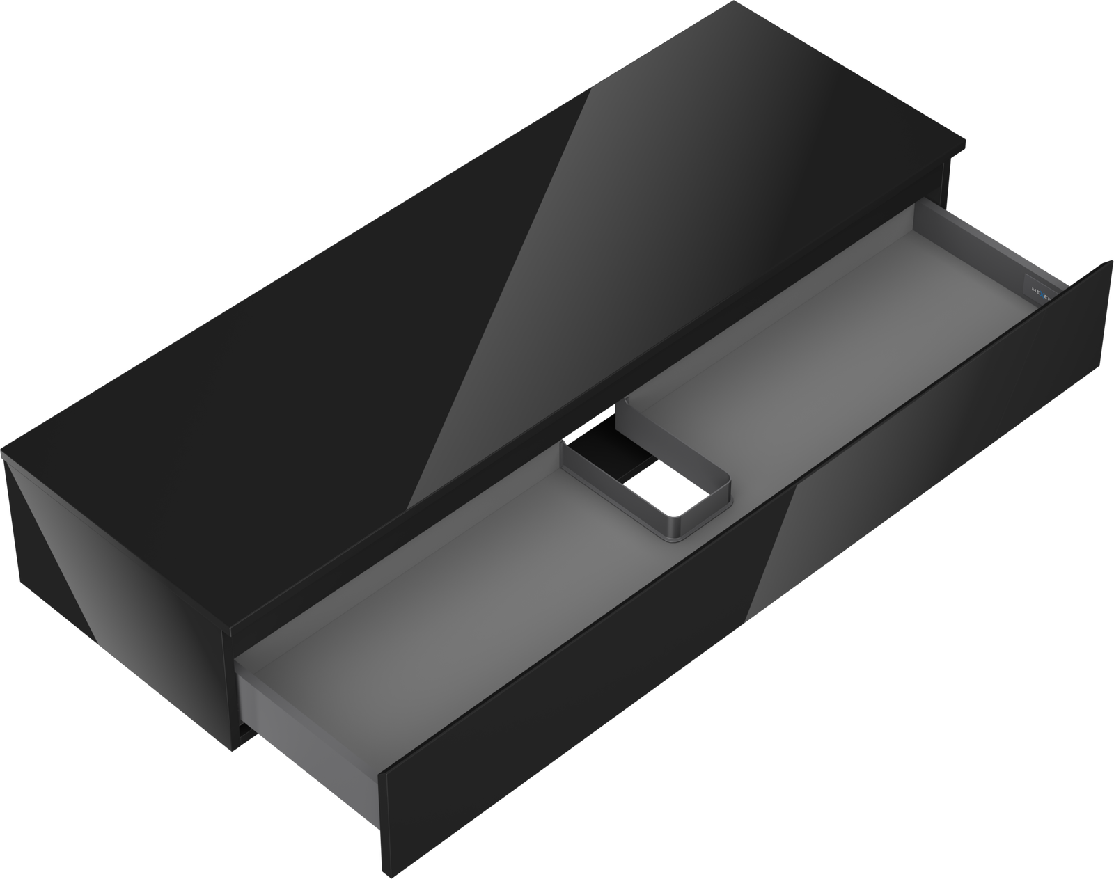 O recorte na gaveta é projetado de forma a acomodar o sifão, que é essencial em instalações de lavatórios. Graças a isso, o móvel pode ser montado de forma totalmente funcional, sem a necessidade de abdicar do espaço da gaveta em prol da instalação.
