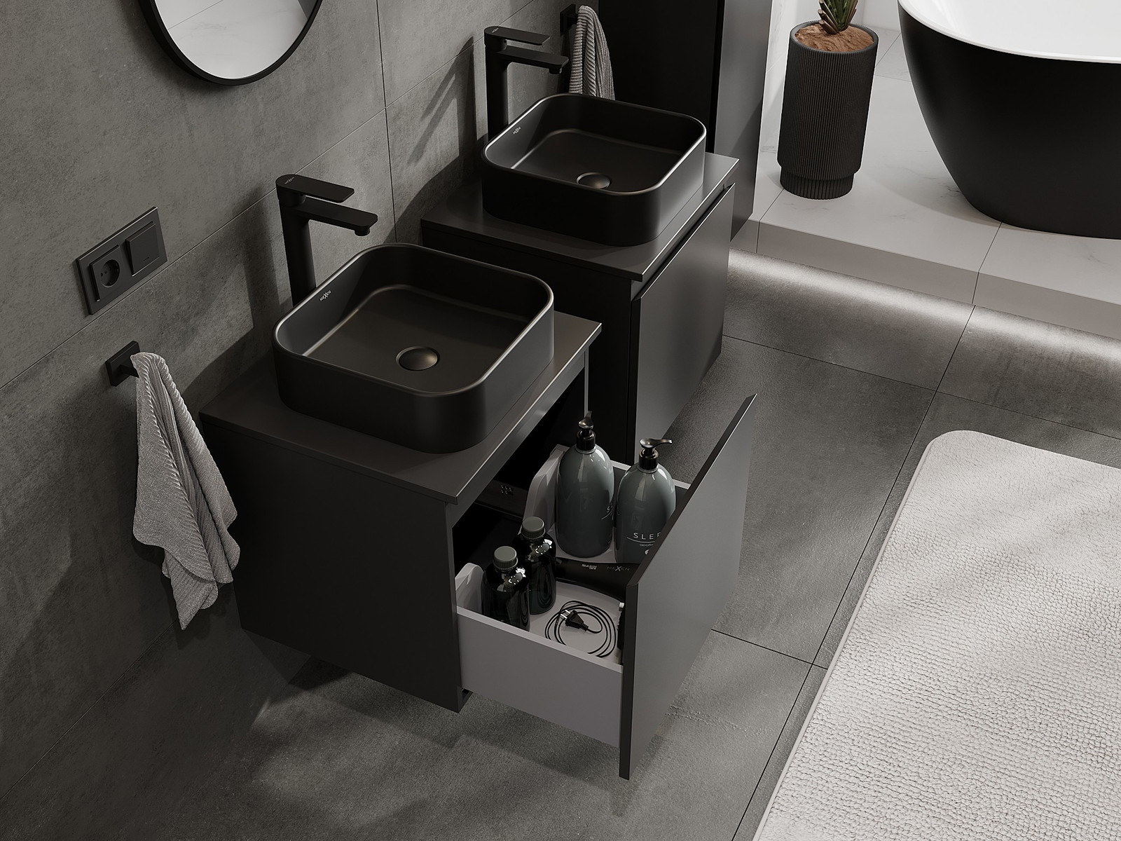 Mexen Orio armário de casa de banho de 50 cm com tampo, 1 gaveta, preto mate - 91A10-05047-1-BFC71