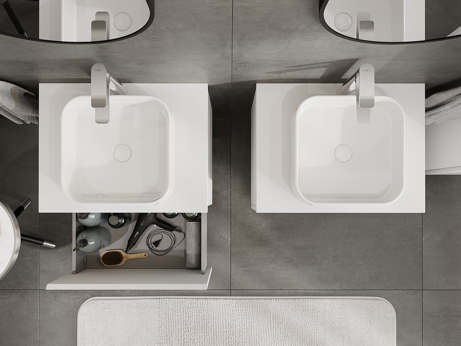 Mexen Orio armário de casa de banho para lavatório 60 cm com tampo, 1 gaveta, branco mate - 91A10-06047-1-BFC01