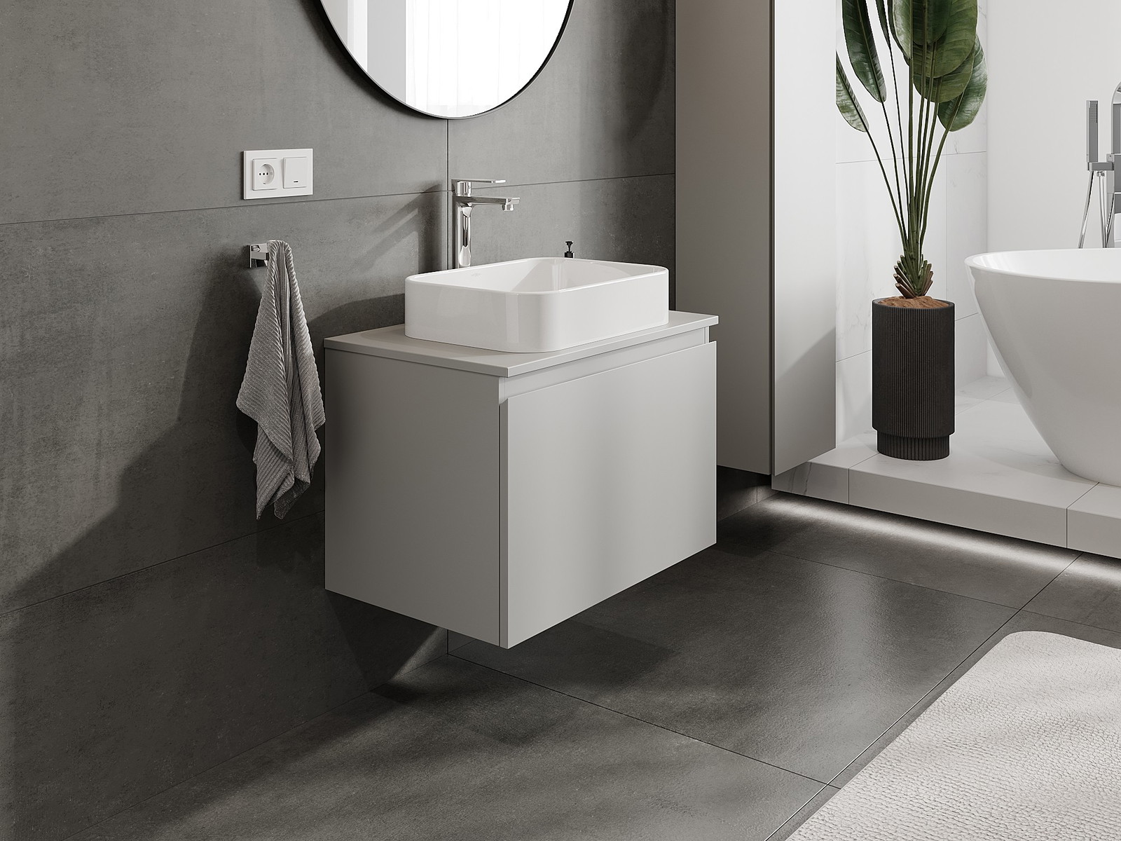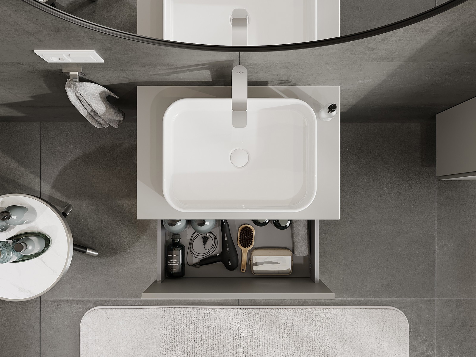 Mexen Orio armário de casa de banho de 70 cm com tábua, 1 gaveta, cinza fosco - 91A10-07047-1-BFC62