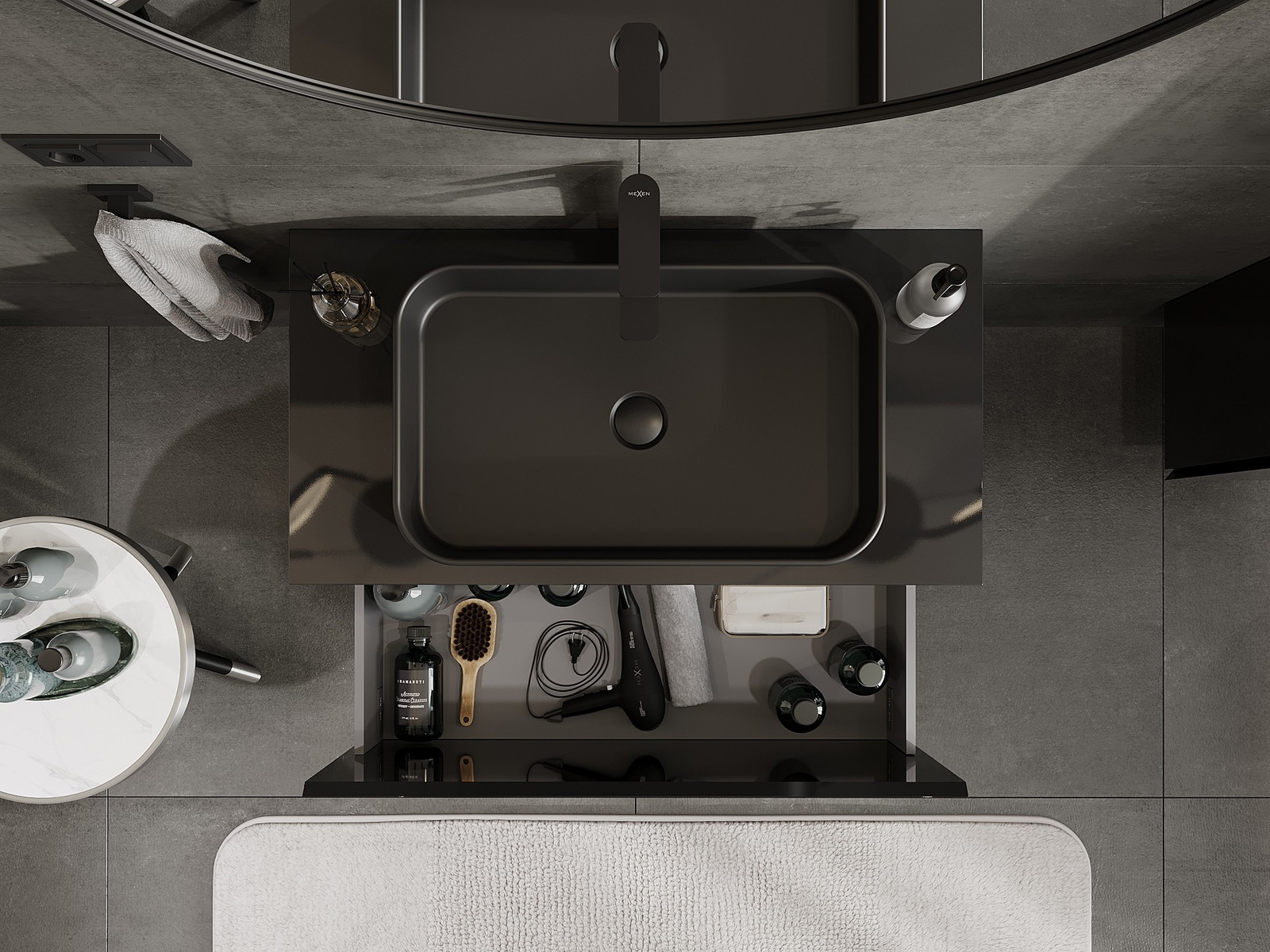 Mexen Orio armário de casa de banho sob lavatório 90 cm com tampo, 1 gaveta, preto brilhante - 91A10-09047-1-BFC70