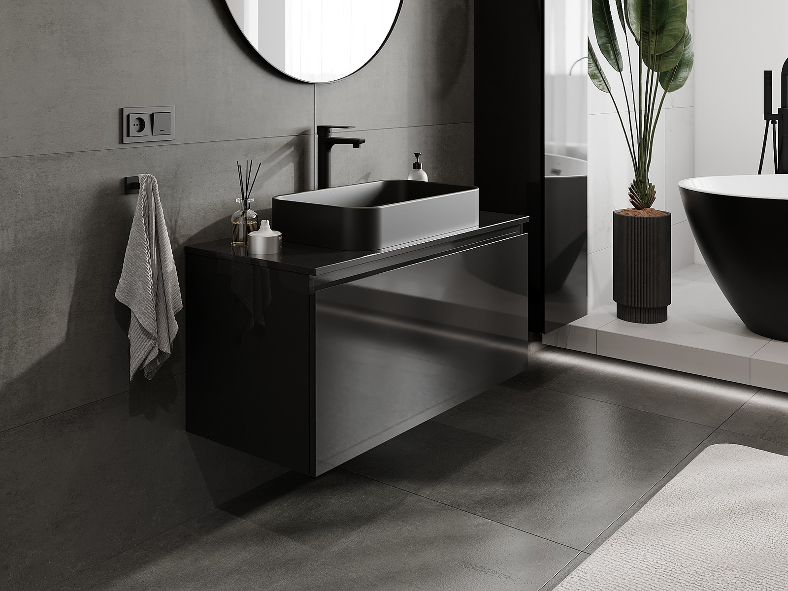 Mexen Orio armário de casa de banho de 100 cm com tampo, 1 gaveta, preto brilhante - 91A10-10047-1-BFC70