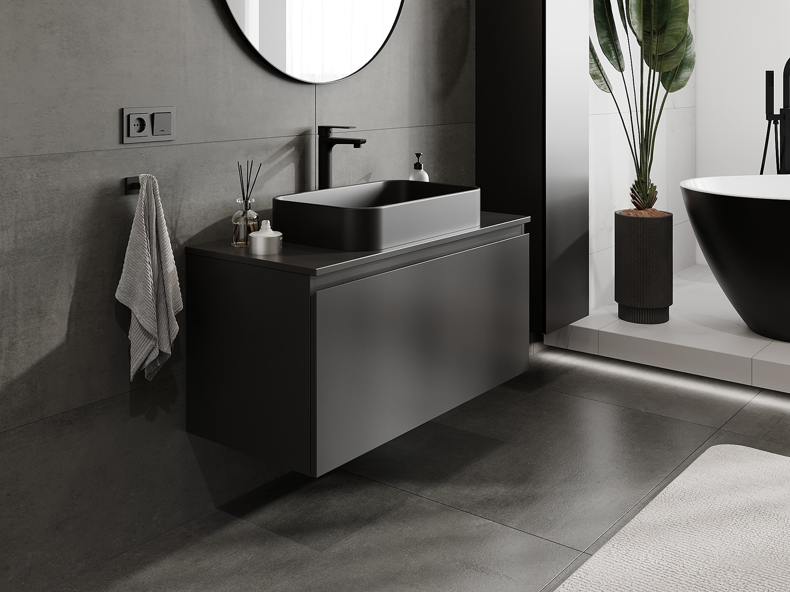 Mexen Orio armário de casa de banho de 100 cm para lavatório com tampo, 1 gaveta, preto mate - 91A10-10047-1-BFC71