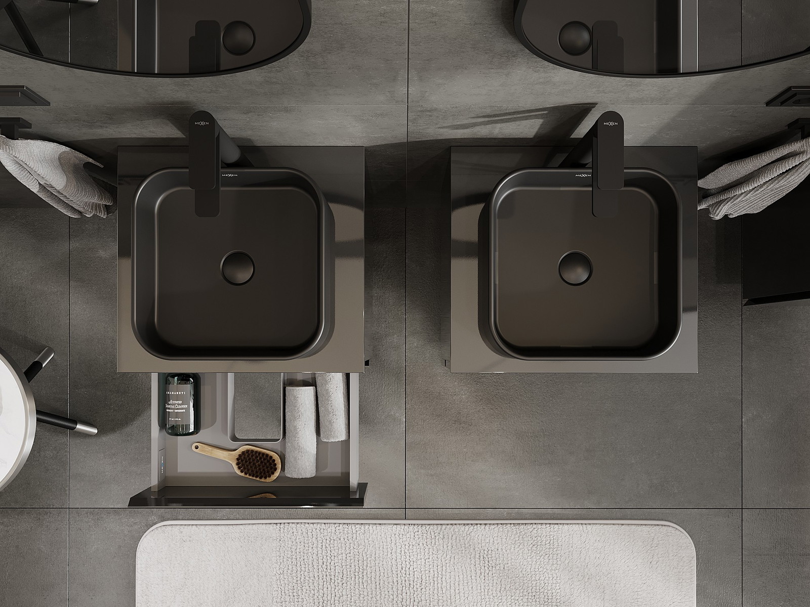 Mexen Orio armário de casa de banho sob lavatório 50 cm com tampo, 2 gavetas, preto brilhante - 91A10-05047-2-BFFC70