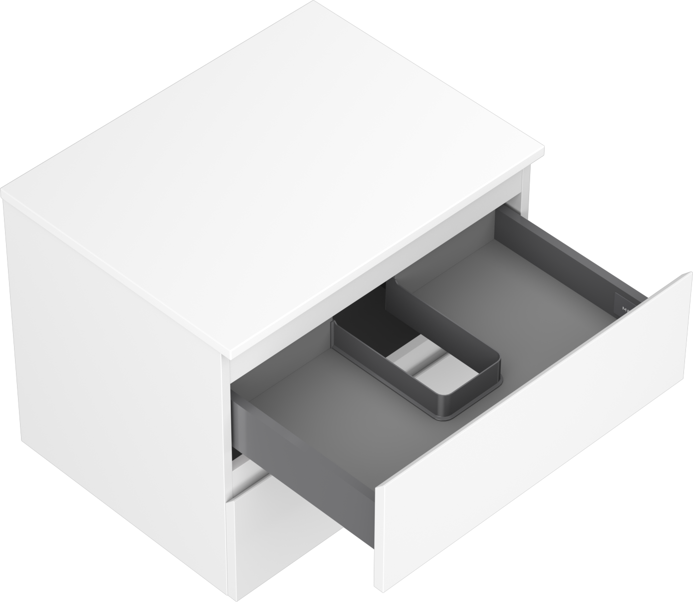O recorte na gaveta é projetado de forma a acomodar o sifão, que é essencial em instalações de lavatórios. Graças a isso, o móvel pode ser montado de forma totalmente funcional, sem a necessidade de abdicar do espaço da gaveta em prol da instalação.