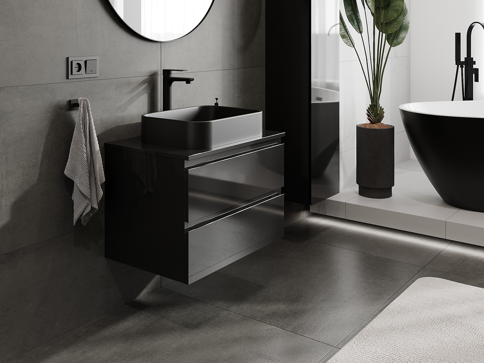 O painel coberto com um verniz de alta qualidade é uma excelente escolha para a casa de banho, proporcionando um aspeto elegante e uma grande resistência à ação da humidade e riscos. O verniz de alta qualidade protege a superfície do tampo, garantindo-lhe uma durabilidade longa, estética e facilidade de manutenção.