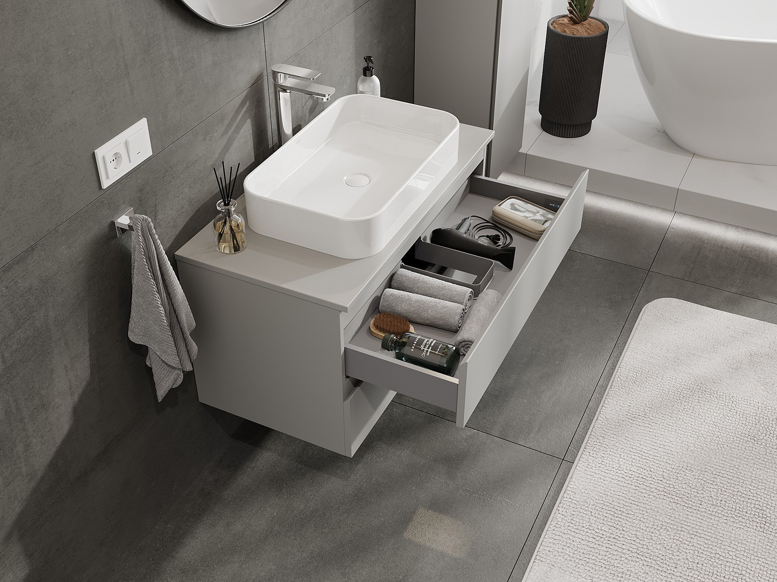 Graças a materiais sólidos, execução precisa e soluções tecnológicas modernas, o produto garante conforto de uso, resistência à humidade e variações de temperatura, bem como uma aparência elegante que se adapta a diferentes estilos de casas de banho.