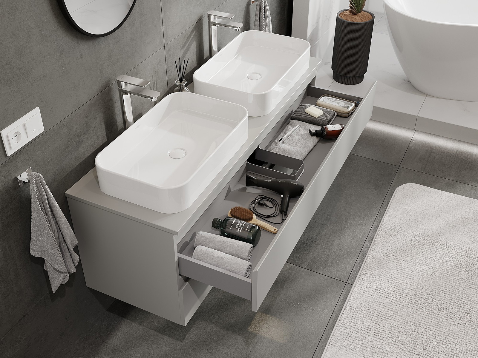 Graças a materiais sólidos, execução precisa e soluções tecnológicas modernas, o produto garante conforto de uso, resistência à humidade e variações de temperatura, bem como uma aparência elegante que se adapta a diferentes estilos de casas de banho.