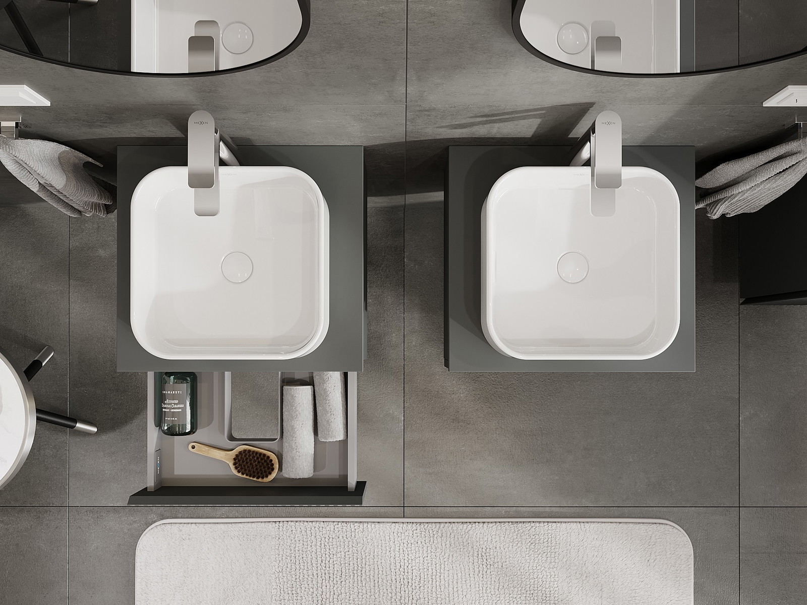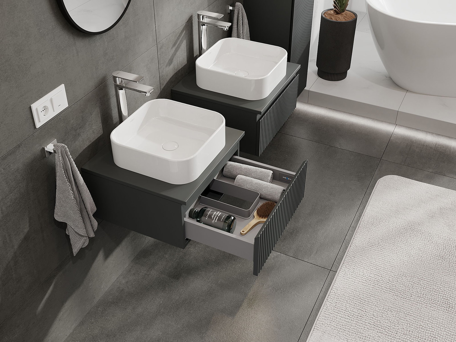 Mexen Rivel armário de casa de banho para lavatório de 50 cm com tampo, 1 gaveta, ranhurado, grafite mate