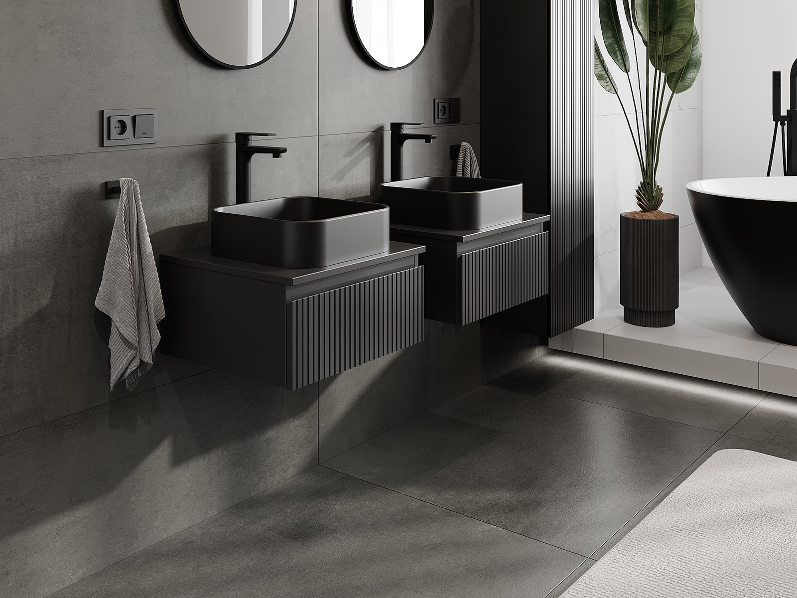 Mexen Rivel armário de casa de banho sob o lavatório 50 cm com tampo, 1 gaveta, frisado, preto mate - 91A20-05023-1-BFC71