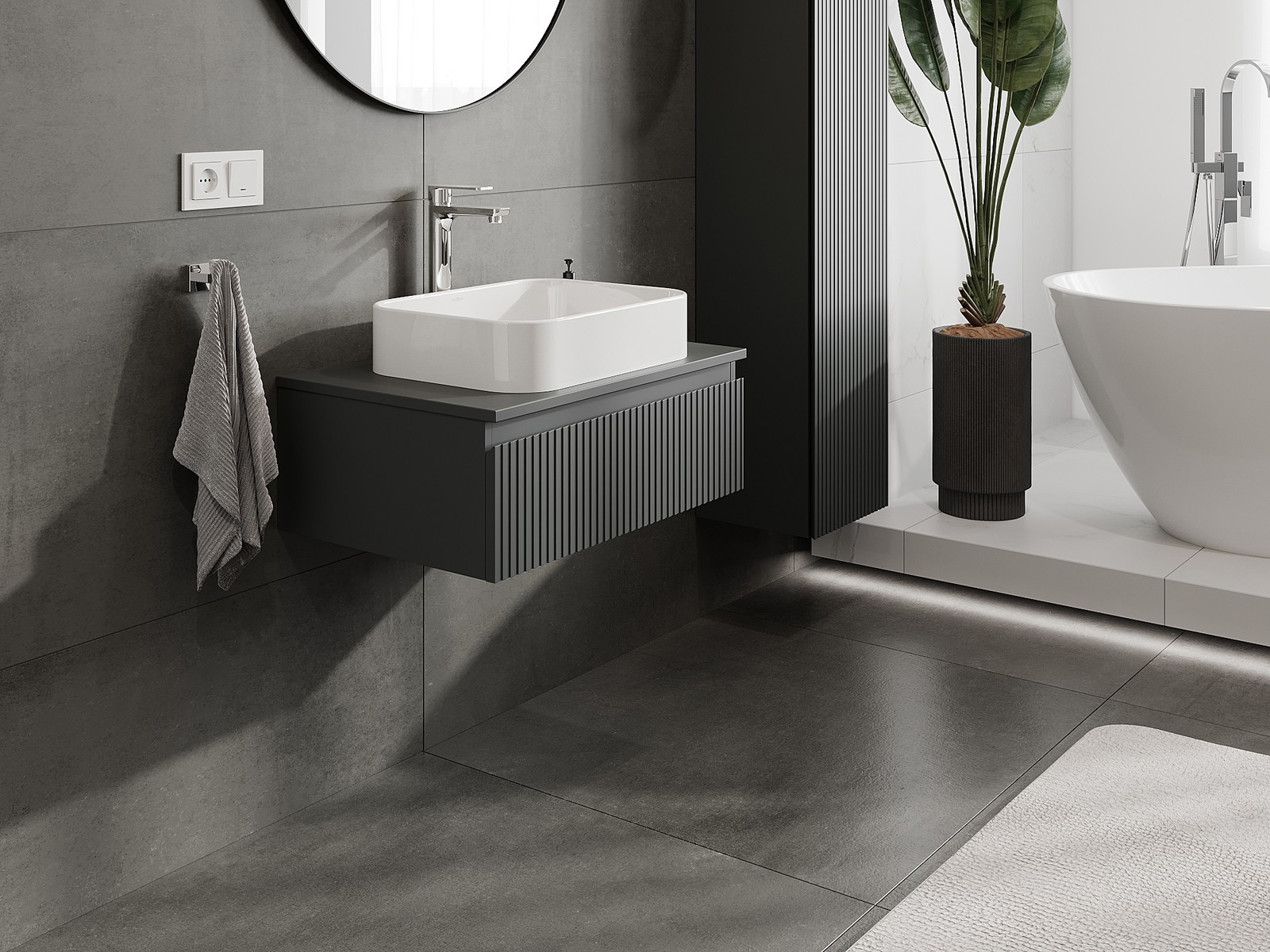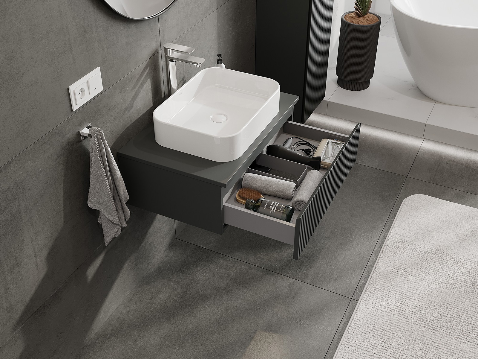 Mexen Rivel armário de casa de banho de 70 cm com tampo, 1 gaveta, ranhurado, grafite mate - 91A20-07023-1-BFC66