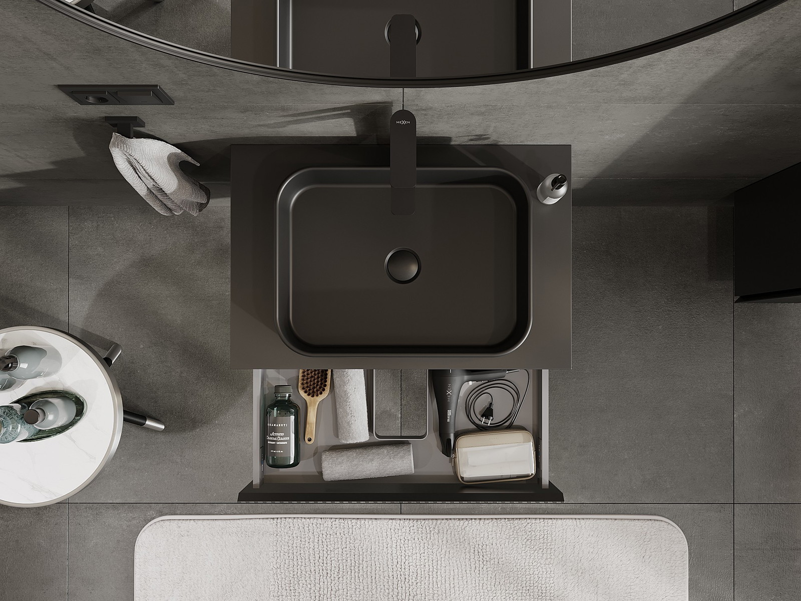 Mexen Rivel armário de banheiro com 70 cm com tampo, 1 gaveta, texturizado, preto mate - 91A20-07023-1-BFC71