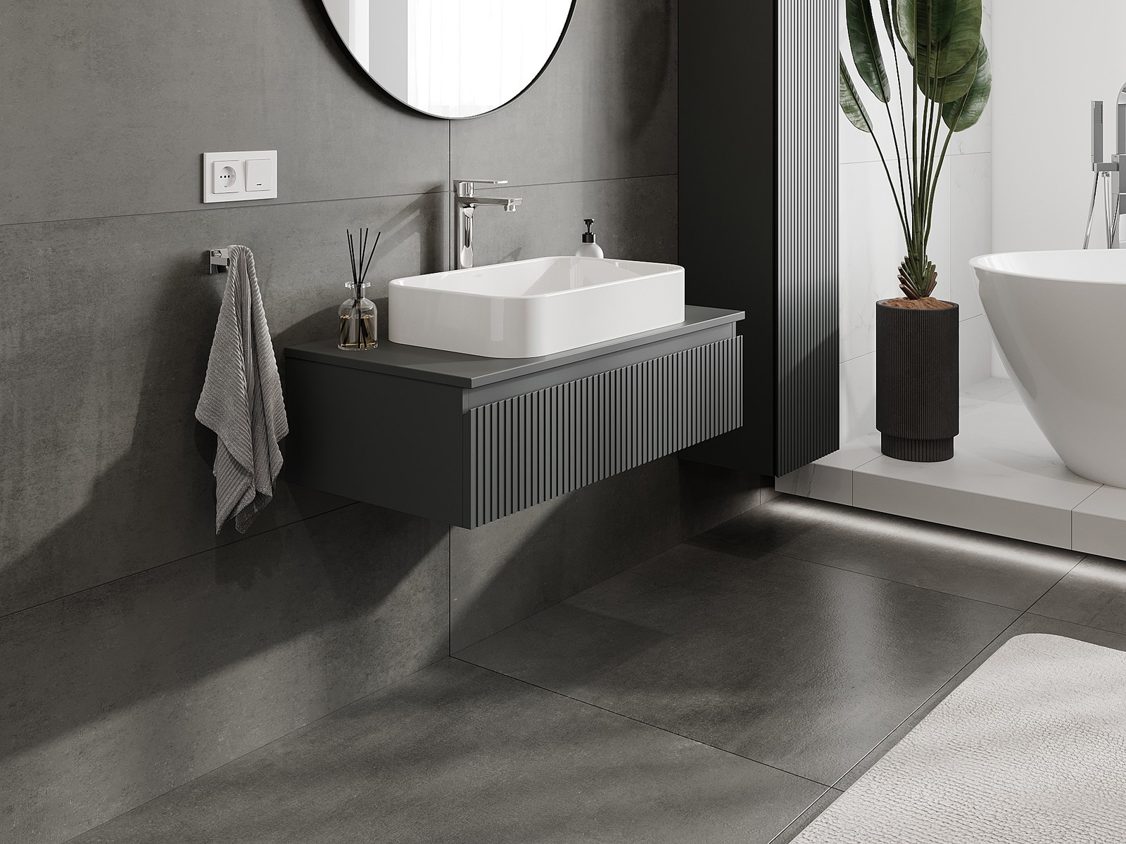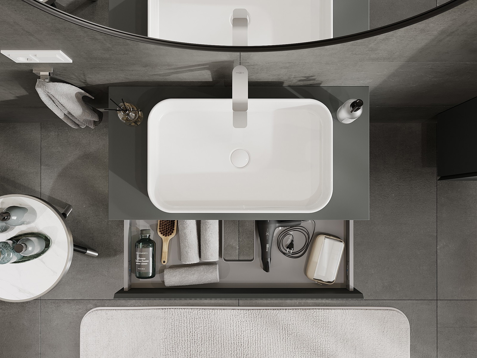 Mexen Rivel Armário de casa de banho sob o lavatório 90 cm com tampo, 1 gaveta, ranhurado, grafite mate - 91A20-09023-1-BFC66