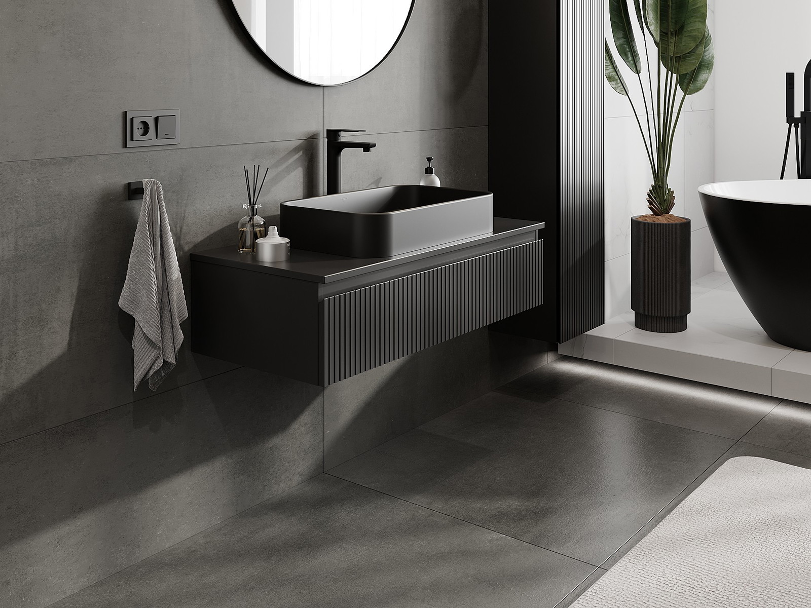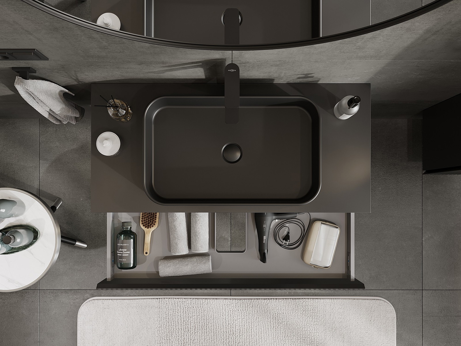 Mexen Rivel armário de casa de banho para lavatório 100 cm com tampo, 1 gaveta, canelado, preto mate - 91A20-10023-1-BFC71