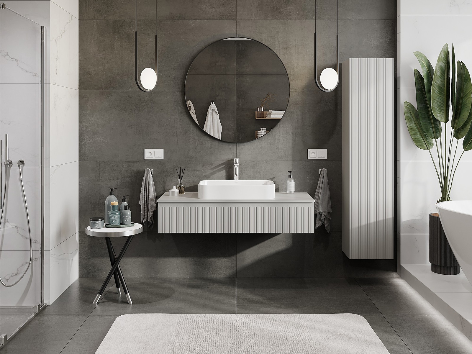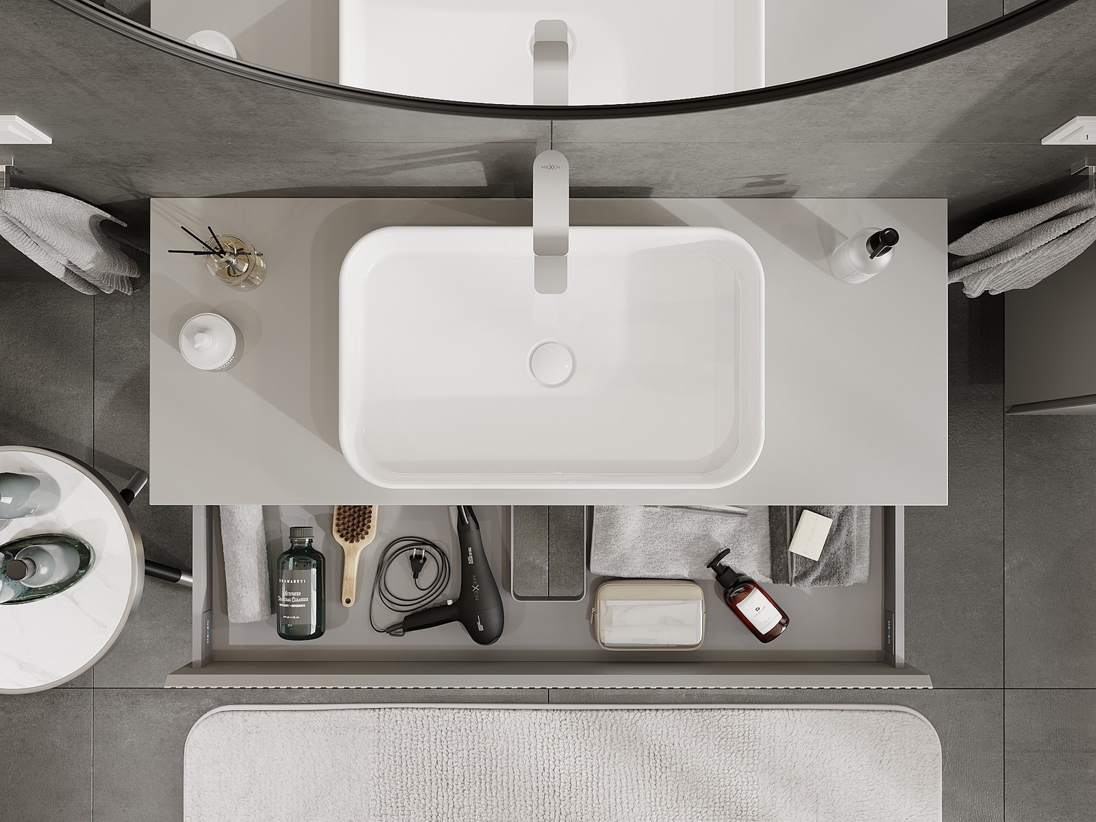 Mexen Rivel armário de casa de banho para lavatório 120 cm com tampo, 1 gaveta, ranhurado, cinzento mate - 91A20-12023-1-BFC62