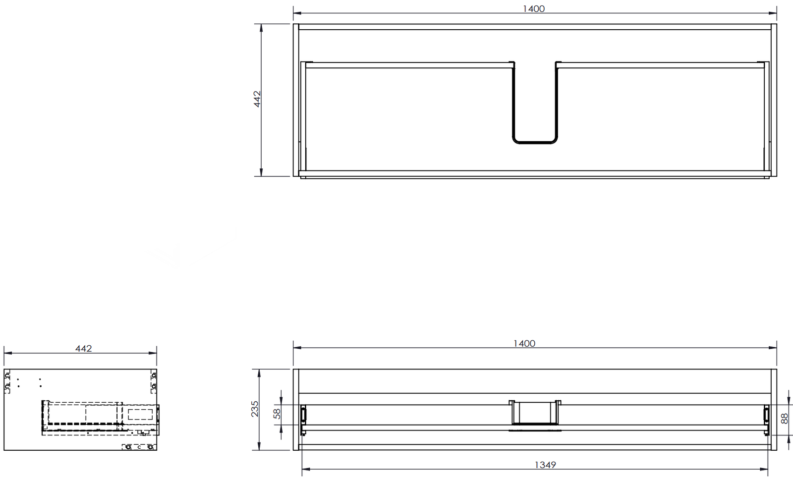 O recorte na gaveta é projetado de forma a acomodar o sifão, que é essencial em instalações de lavatórios. Graças a isso, o móvel pode ser montado de forma totalmente funcional, sem a necessidade de abdicar do espaço da gaveta em prol da instalação.