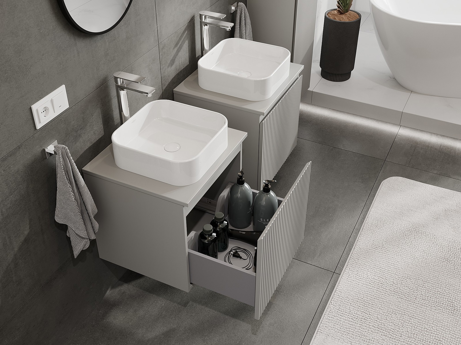 Mexen Rivel armário de casa de banho para lavatório 50 cm com tampo, 1 gaveta, canelado, cinzento mate - 91A20-05047-1-BFC62