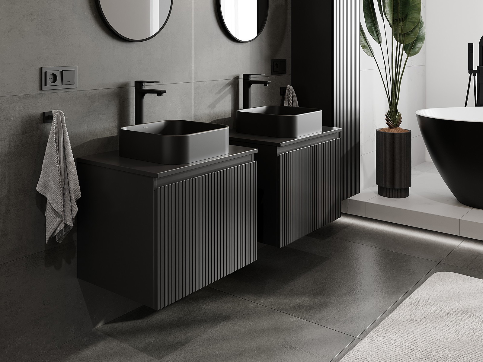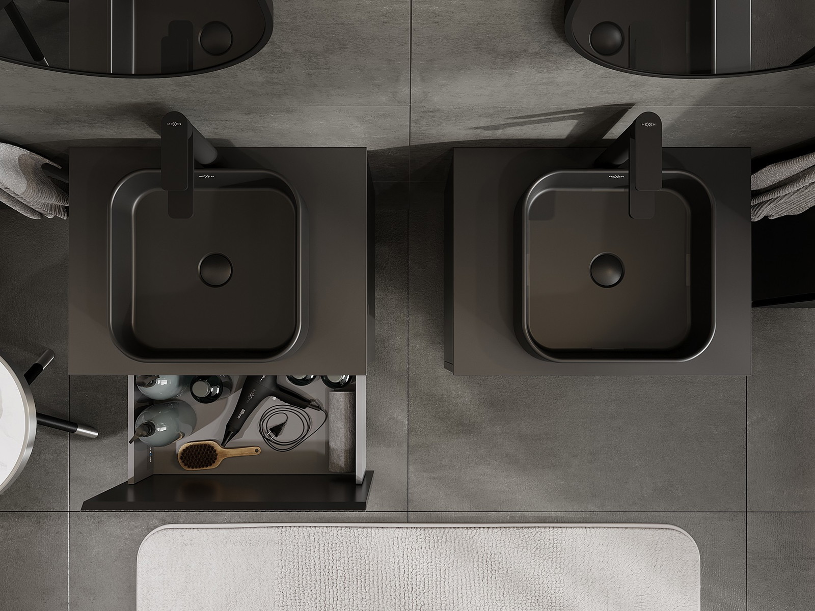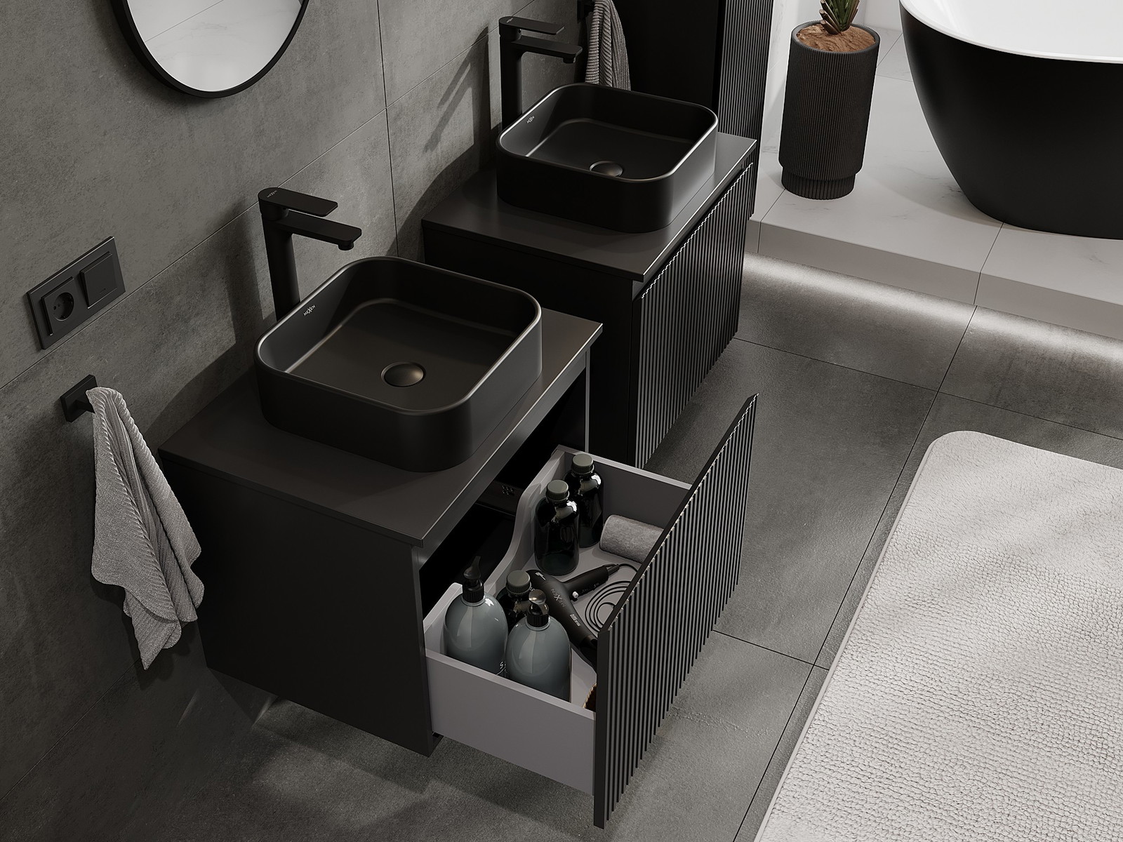 Mexen Rivel armário de casa de banho sob bancada 60 cm com tampo, 1 gaveta, canelado, preto mate - 91A20-06047-1-BFC71